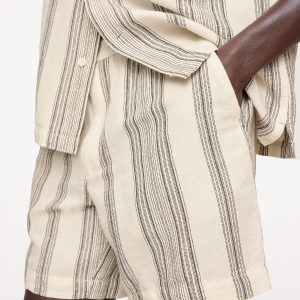 7″ Stripe Linen-Cotton Pull-On Short