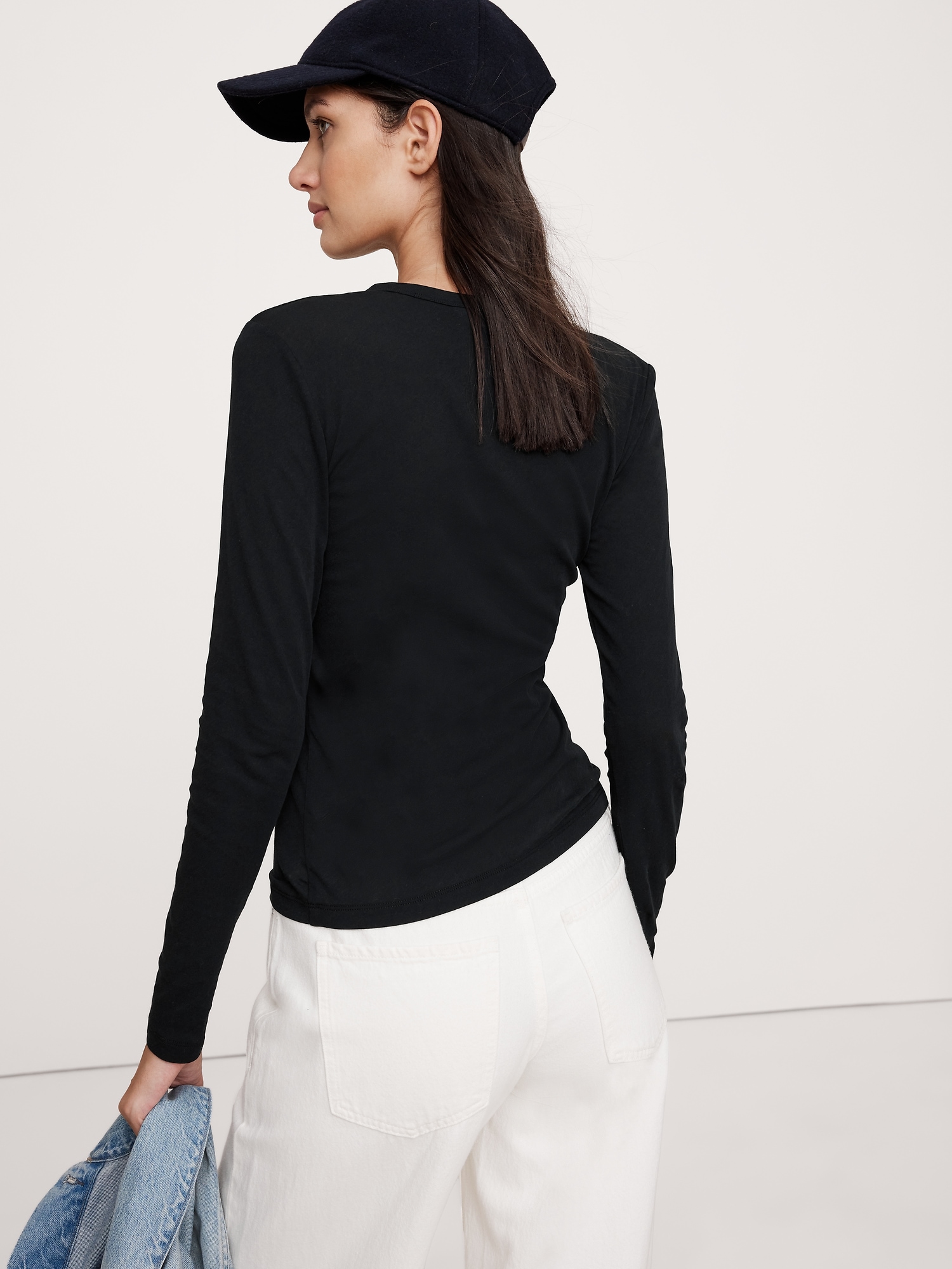 Airy Cotton Crepe Crew-Neck T-Shirt