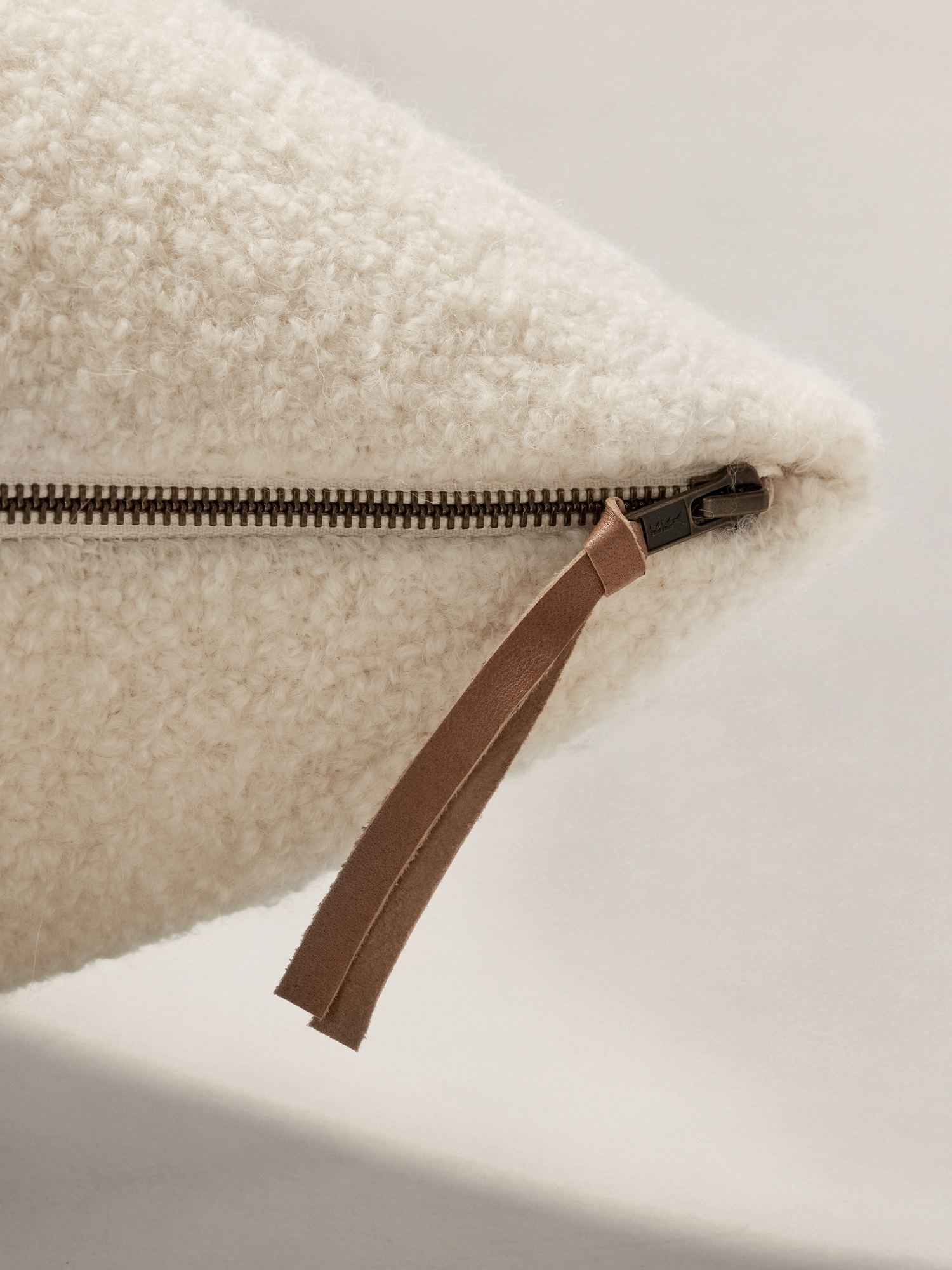 Spun perfection, richly looped alpaca comes together to form a sumptuous display of bouclé in this splendid alpaca bouclé throw pillow. From Italy’s Manifattura Big mill: This Tuscan-based mill specializes in the use of beautiful, natural, and regenerative fibers to produce woven luxuries. Invisible zip closure. Made in Italy. Pillow inserts are sold separately and are sized slightly larger than our pillow covers to create a fuller effect. #782708