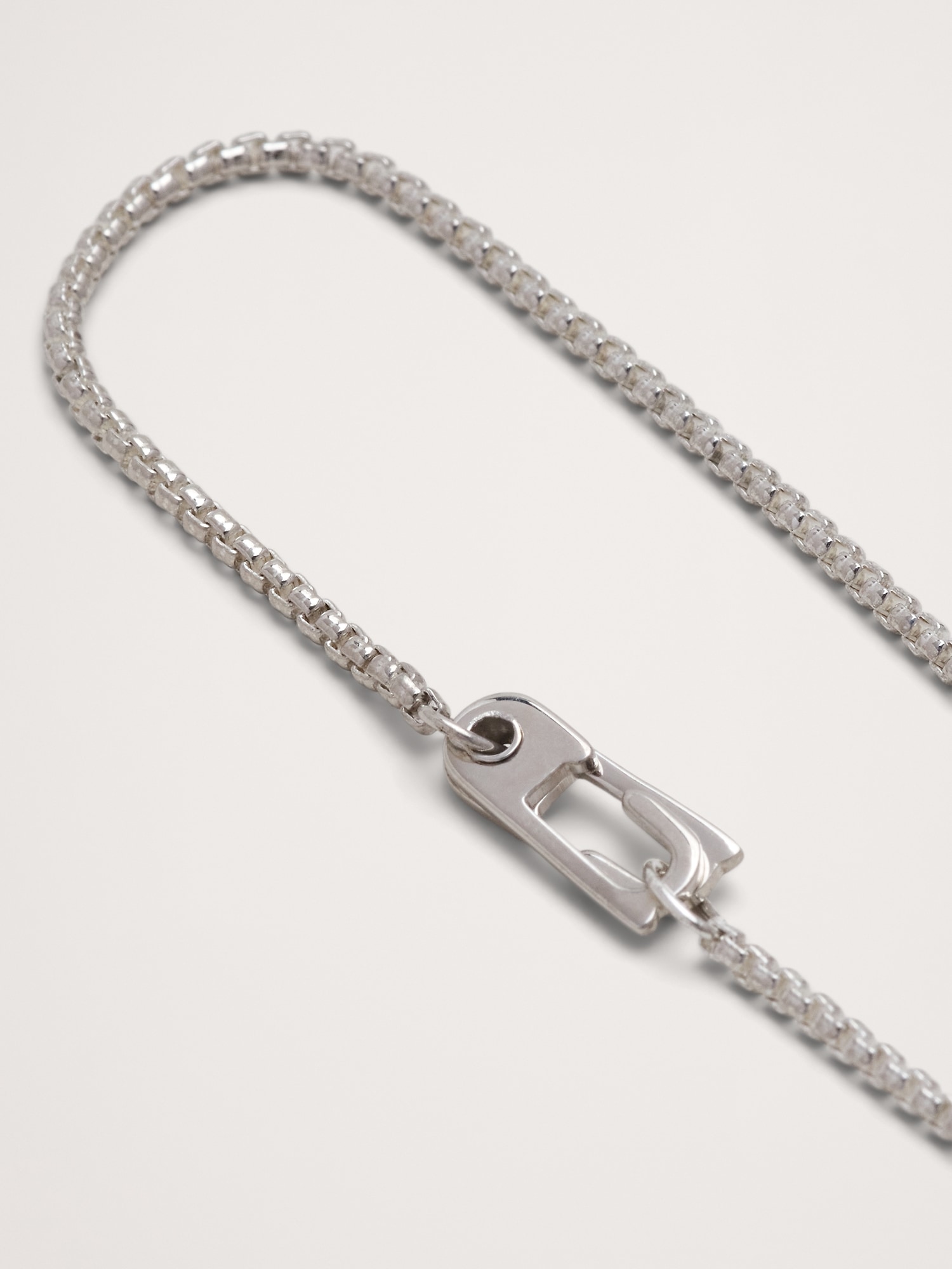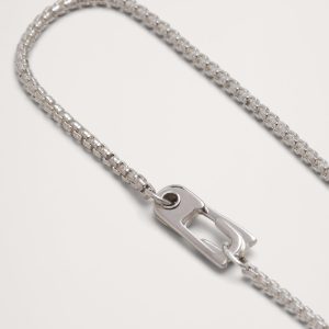 A beautiful mix of Miansai’s signature sterling silver carabiner hardware set against a sterling silver Venetian-link chain.