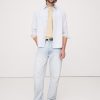 Zip fly with hook-and-bar closure. Belt loops.