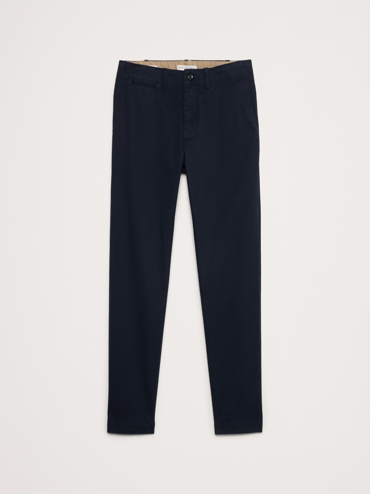 Modeled after a vintage pair of officer’s chinos, we cut this slim-fit pant from a stretchy, organic cotton twill. We added an extra stone wash for a broken-in look and an already-loved feel.