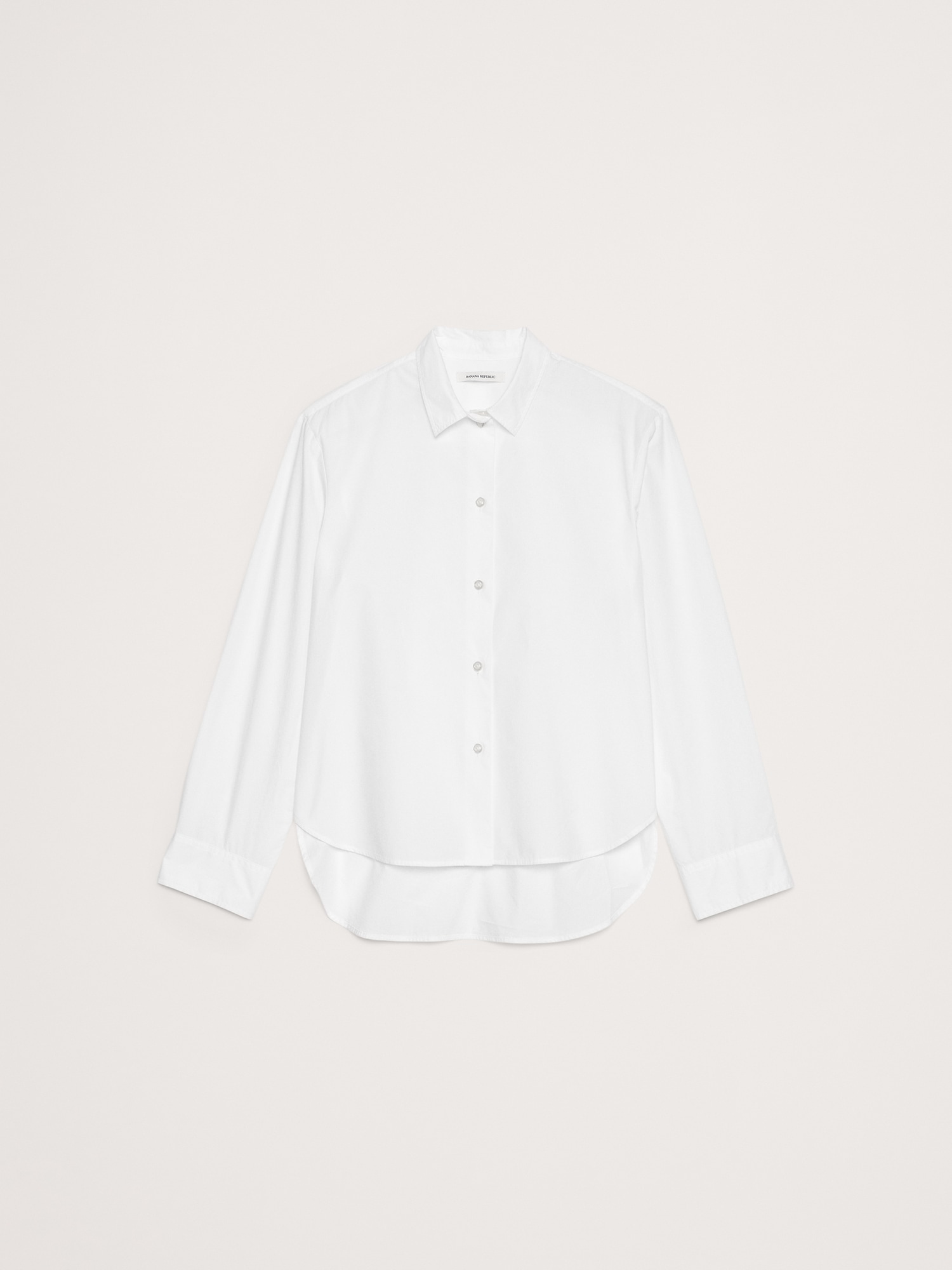 A classic in every sense of the word, we updated the fit of this shirt so it’s boxy and a little short—ideal for playing with proportions. Boxy Fit: A straight and easy fit. Point collar with button front. High-low hem. #826044