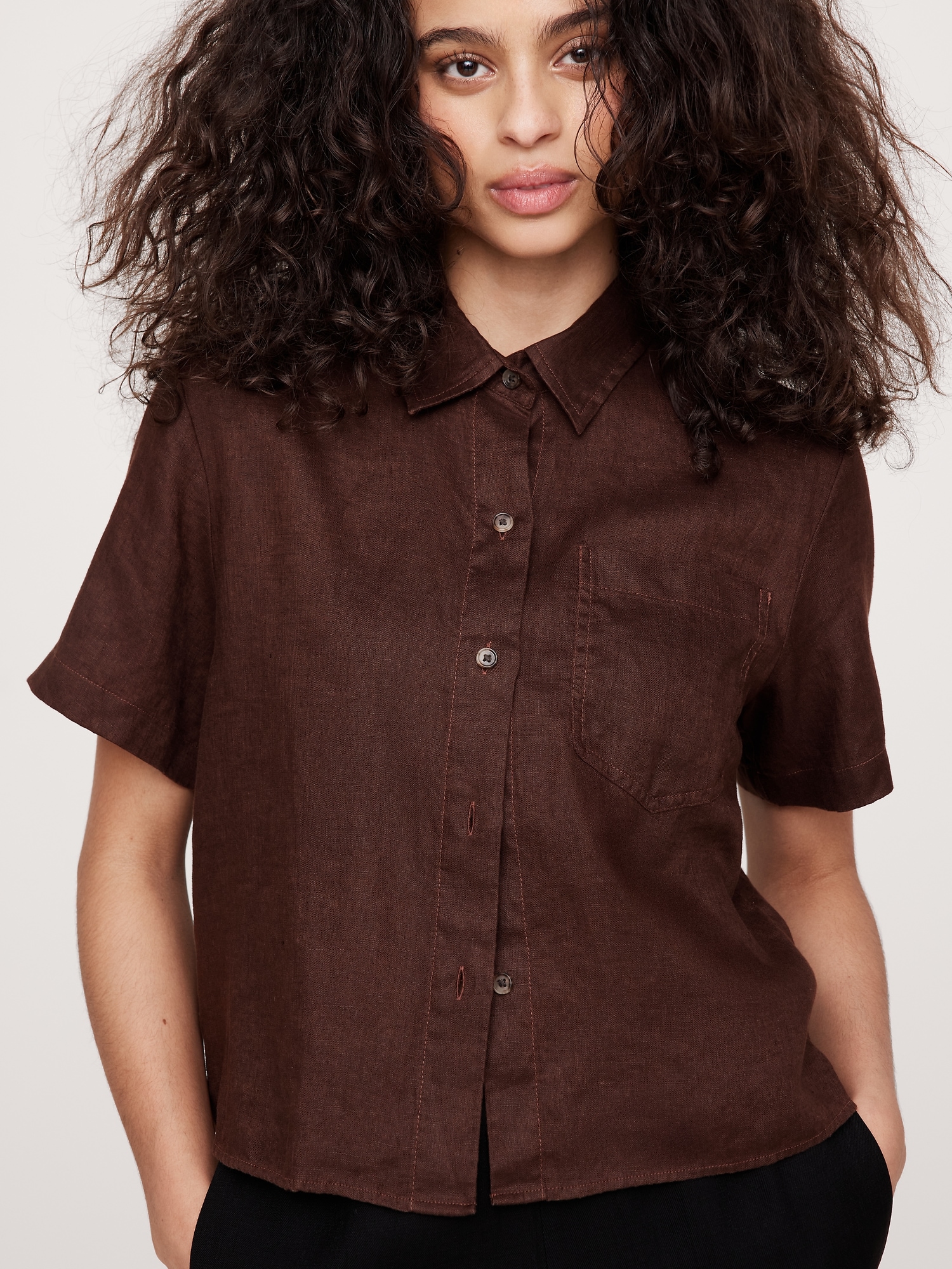 Boxy Linen Short-Sleeve Shirt