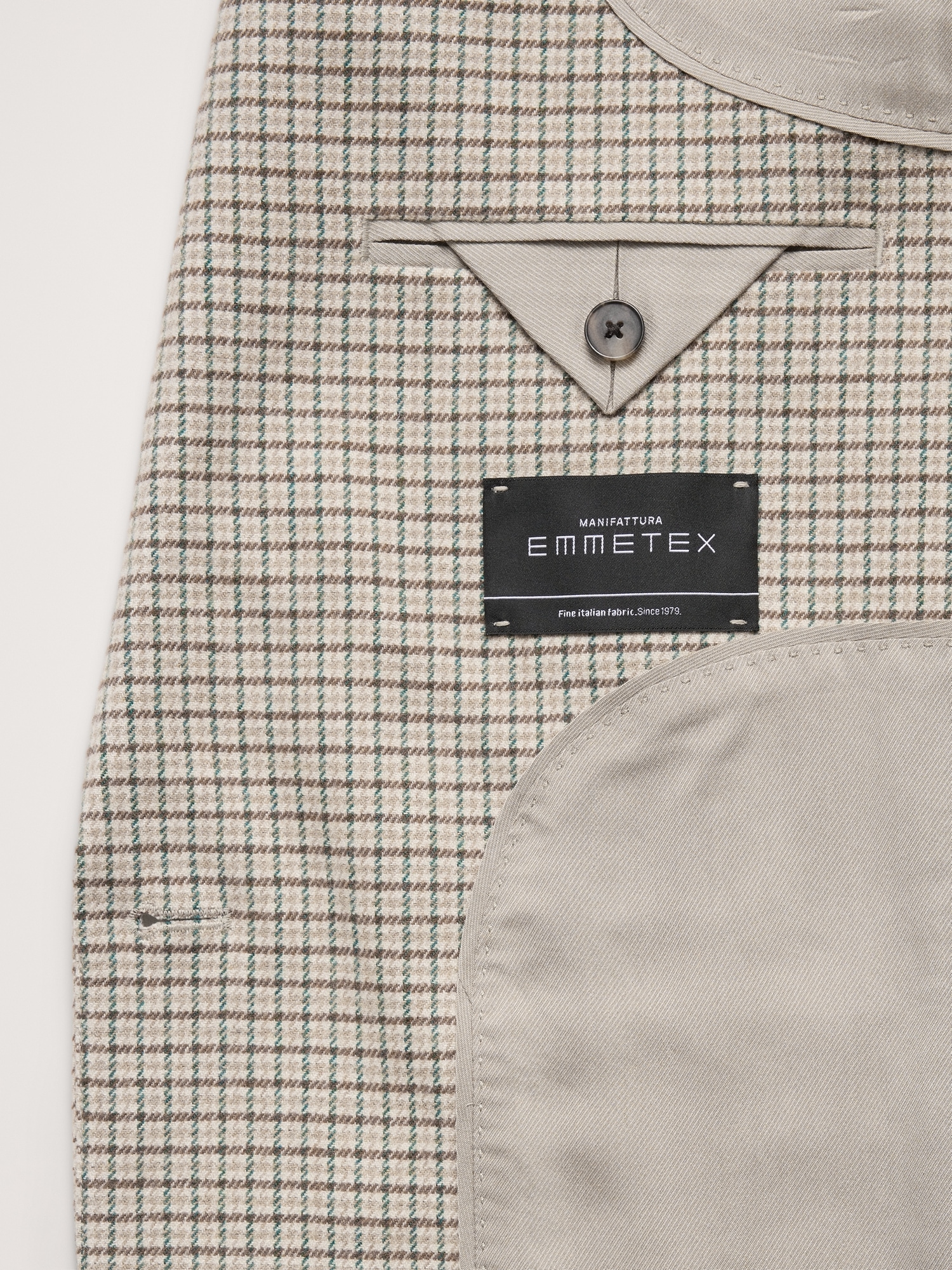 Notch lapel with single-button front.