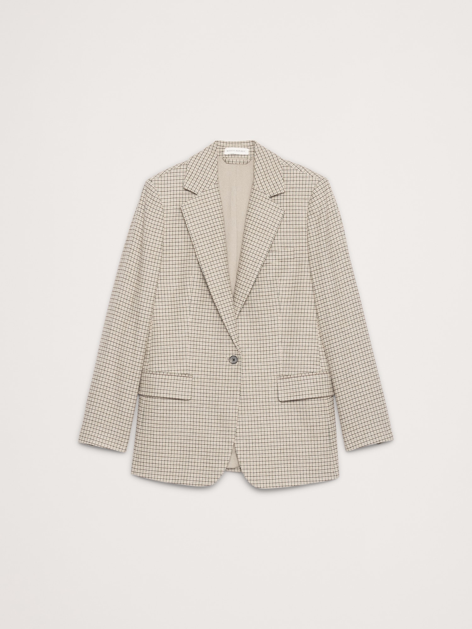 Our take on a classic borrowed-from-the-boys silhouette, we cut this boyfriend-fit blazer for a tailored-yet-relaxed look. For fabric, reached for an Italian flannel fabric that’s warm-handed and a little dressed up.