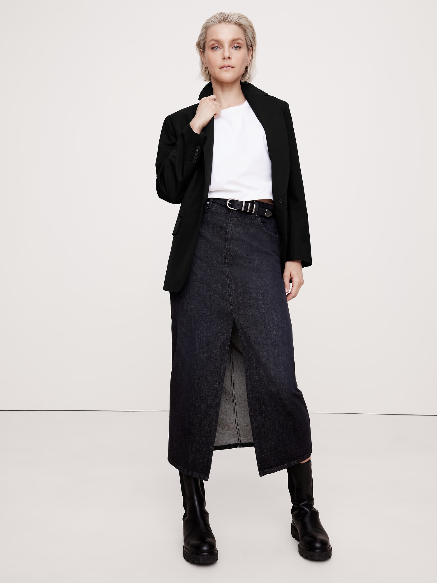 Boyfriend Fit: Relaxed shoulder, straight through the waist.