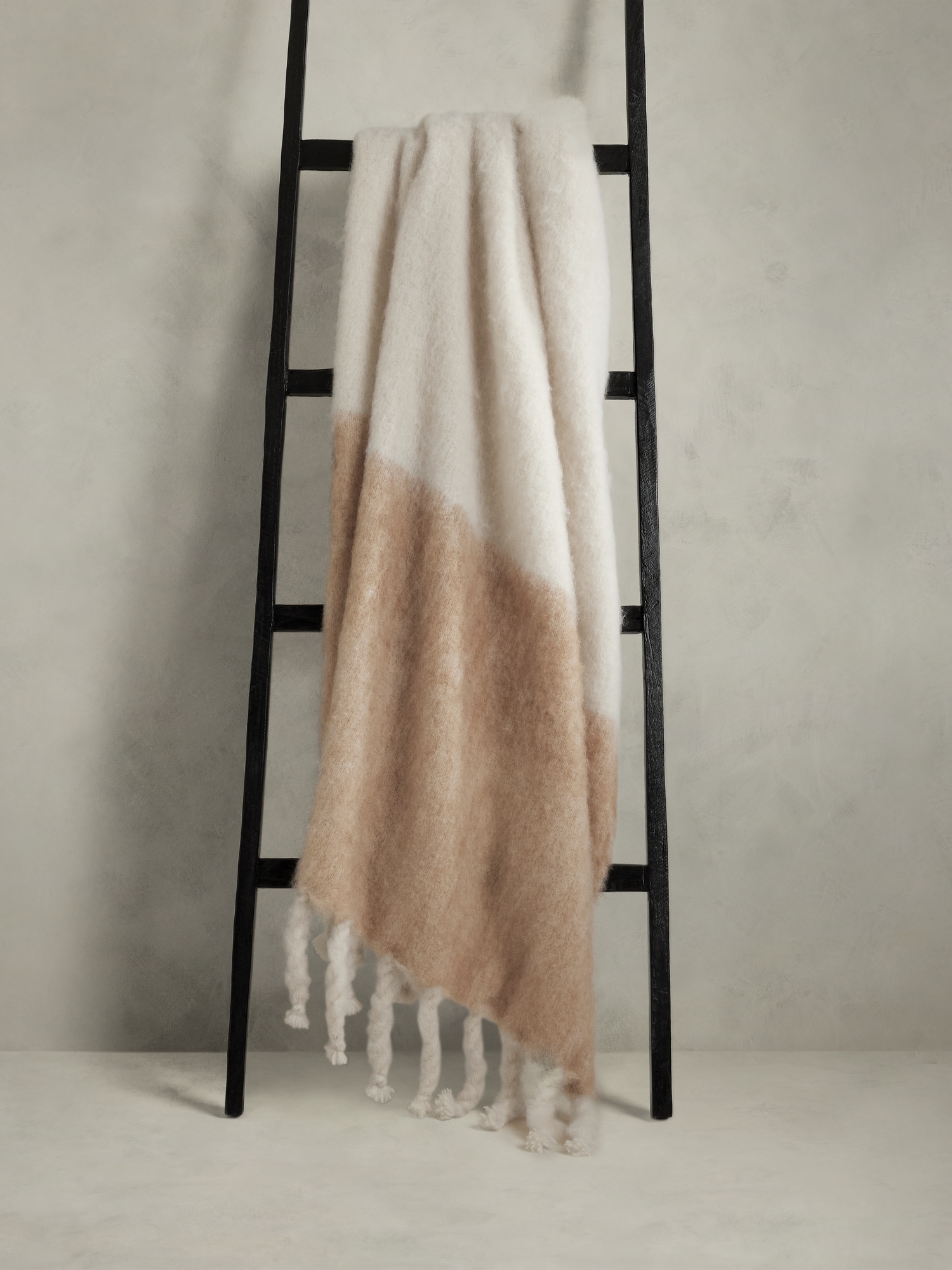 Age-old techniques meet modern motifs. Handcrafted in Spain of brushed wool, our silky-soft, feather-light throw features a contemporary color-block design accented with long, twisted fringe that’s braided and knotted by hand. 8
