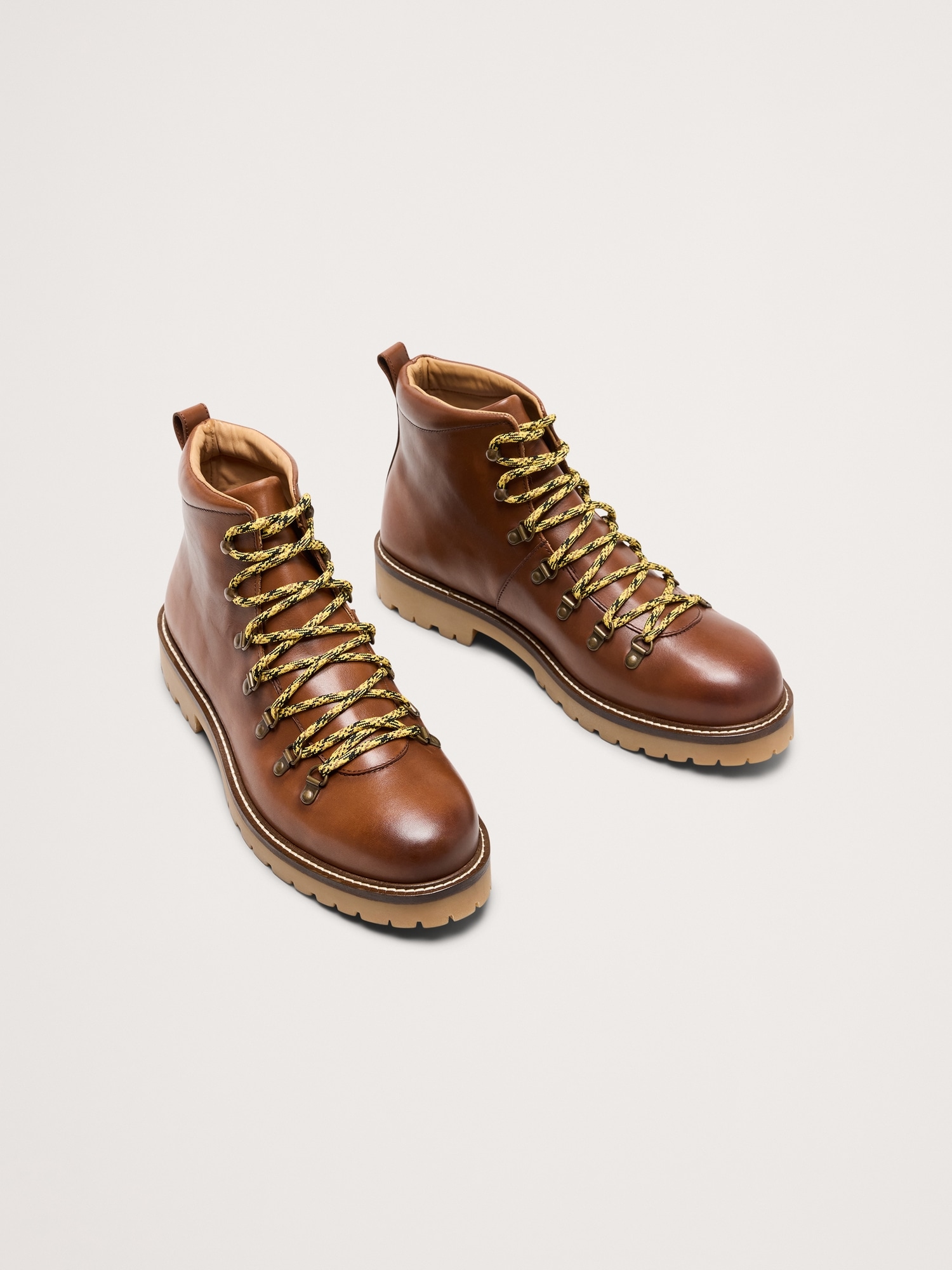 A hiking boot, but make it luxe. We took the style details from a pair of rugged alpine boots, but recreated them in a beautiful burnished leather.