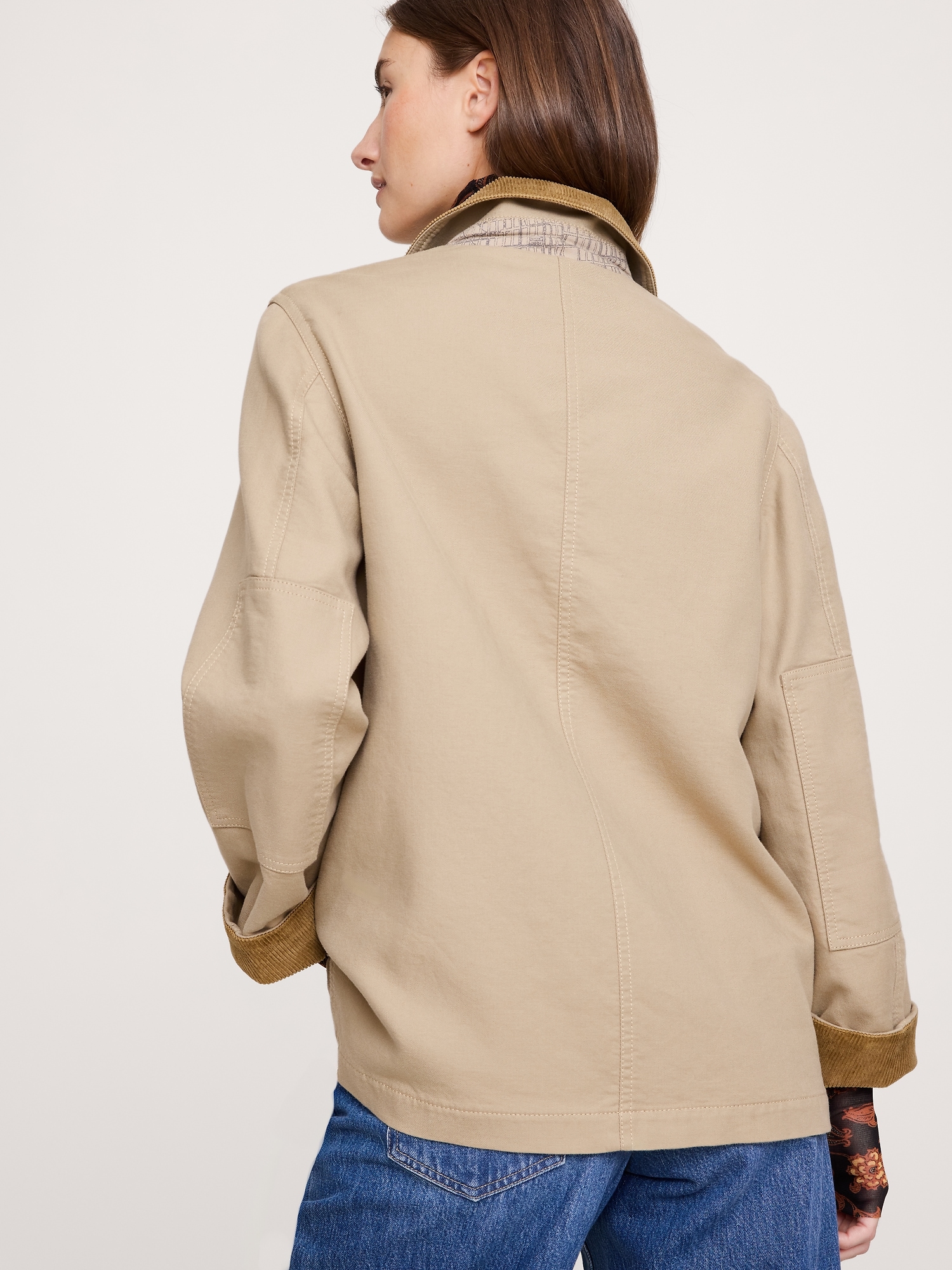 An always-favorite in our book, we cut this classic work jacket in rugged canvas with a corduroy collar. Plus, we added a garment wash for lived-in color and softness.