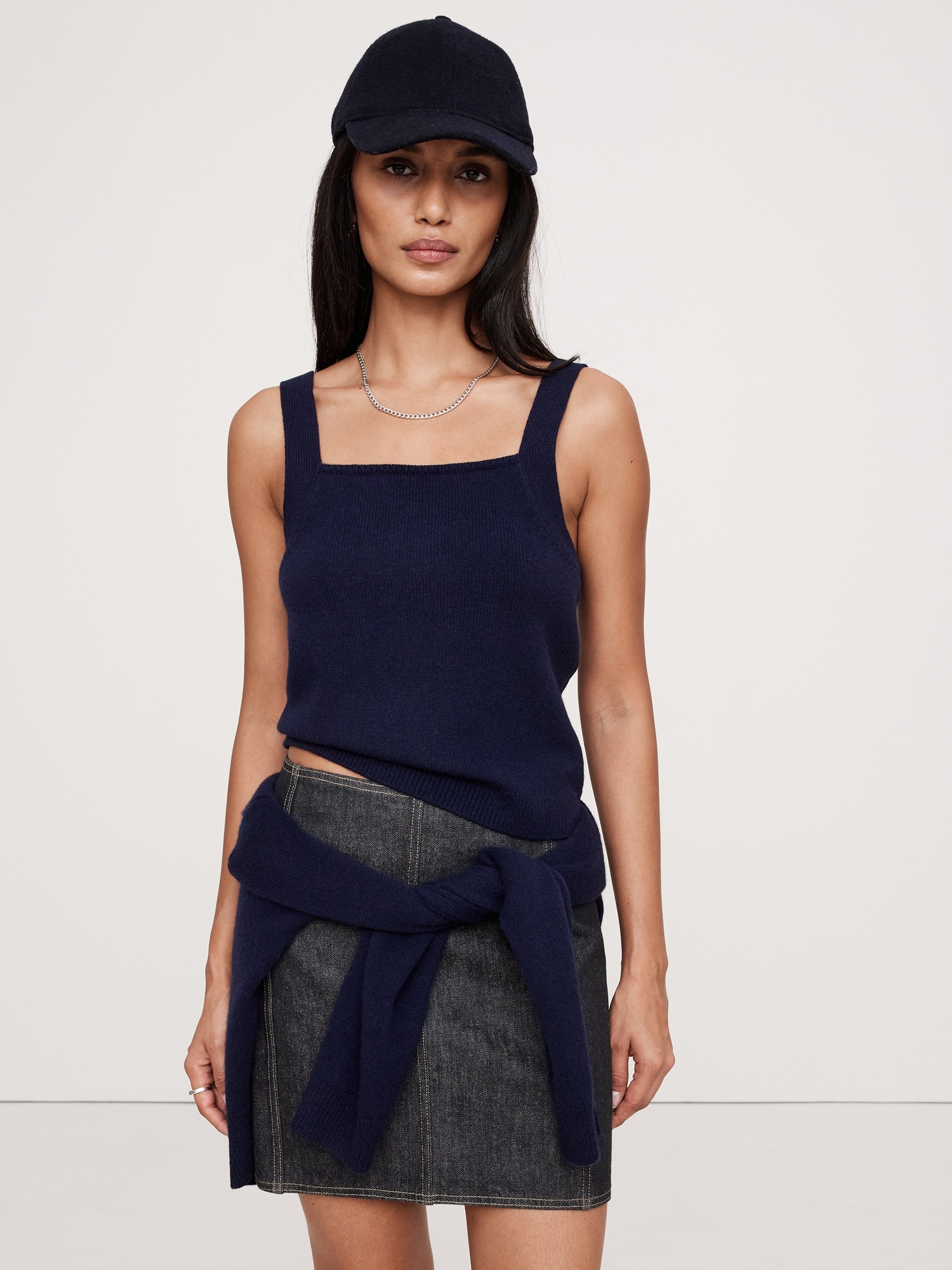 Happy and this cashmere tank adds a bit of optimism thanks to our signature cashmere yarn—beloved for its softness and midweight warmth. Style it now with the matching cardigan and pair it with linen pants and flat sandals once the weather warms.