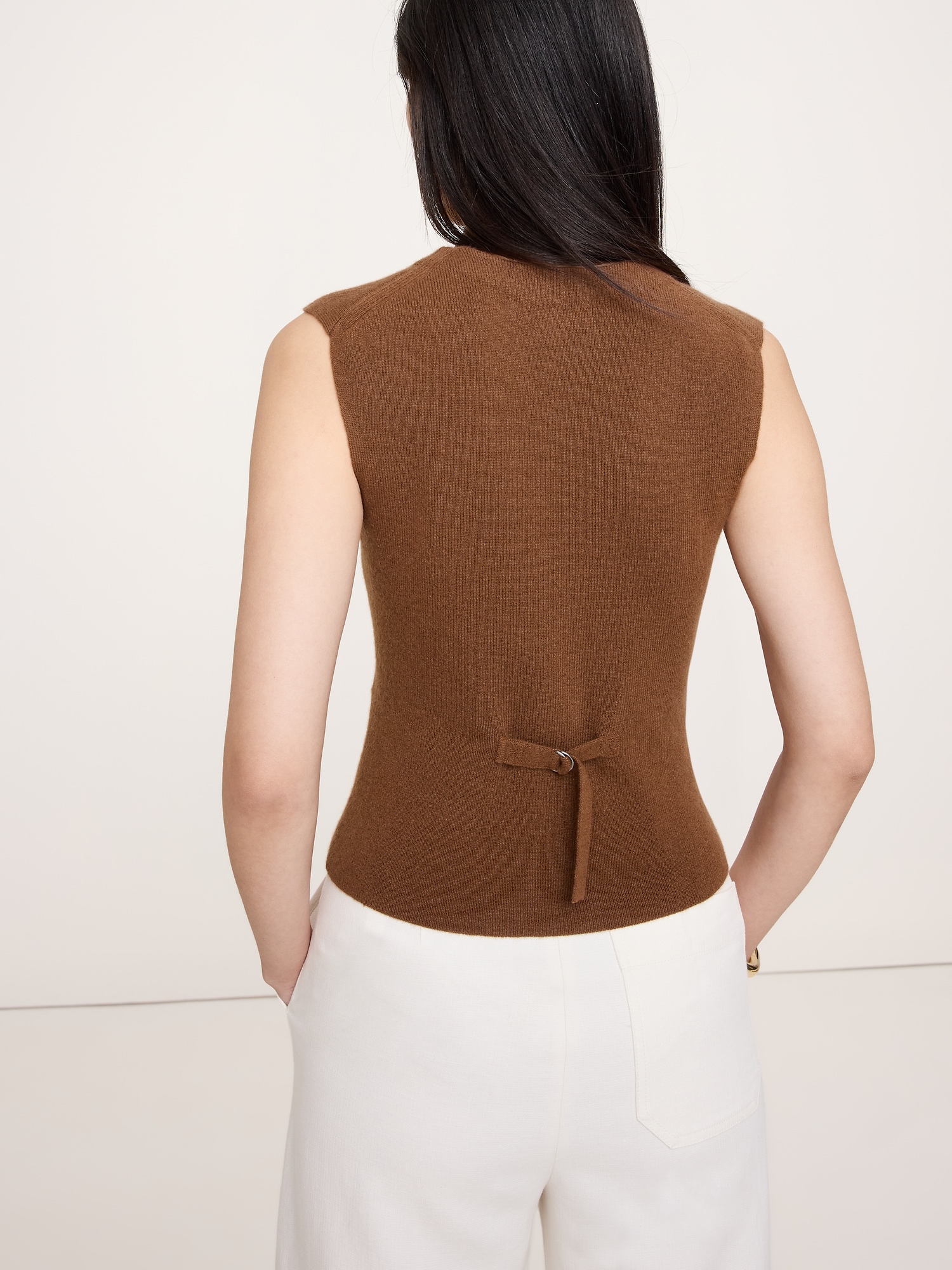 Style it on its own as a top or as a layer, this vest is knitted in our signature midweight cashmere yarn so it’s ideal in cooler seasons. Cut in a cropped length that sits just above the hips.