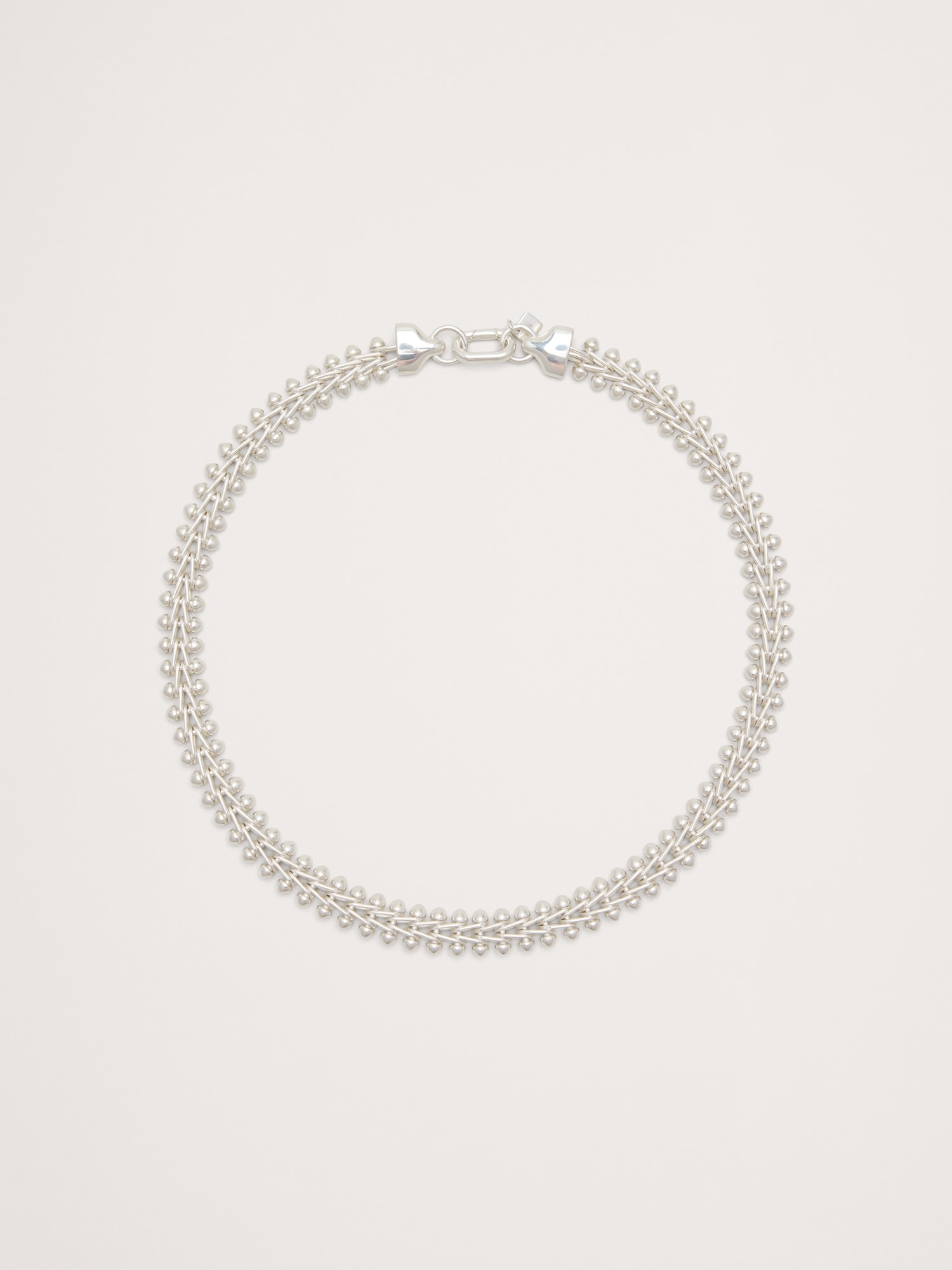 A timeless and understated take on the classic chain-link necklace, that’s anything but basic with a woven herringbone links and punctuated with ball tips.