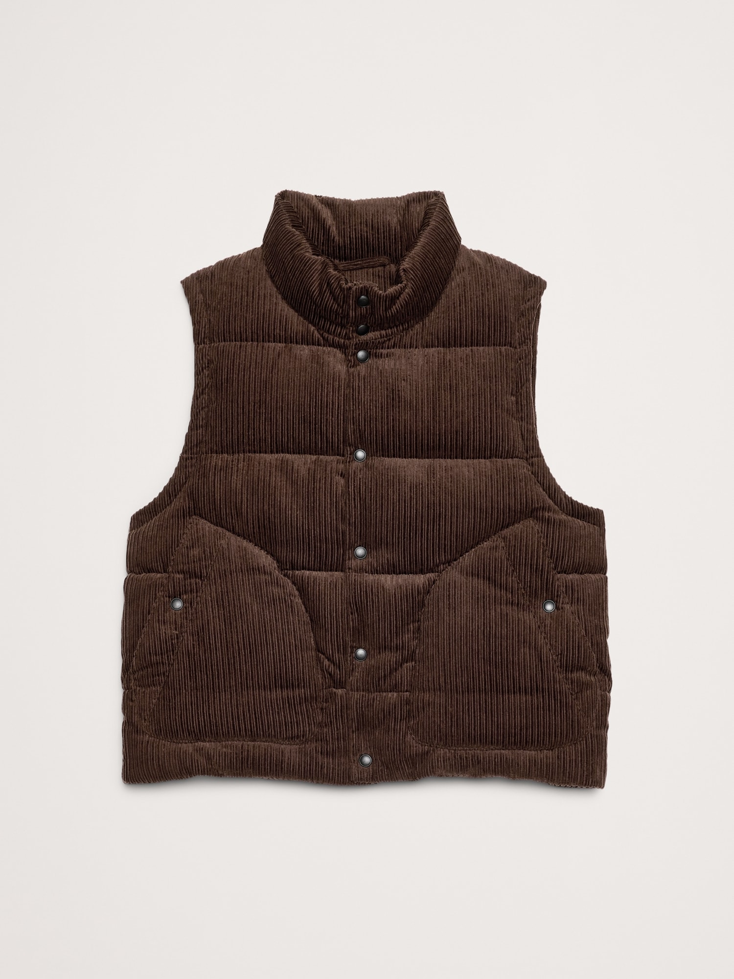 We fell hard for this soft, cotton corduroy—we love the retro feel of its mix of skinny and wide wales—so we knew we had to do something special with it. Here, a classic puffer vest to layer through cooler seasons.