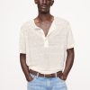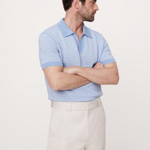 We love a retro sweater polo so we dreamed this one up in warm-weather ready cotton and linen. Look closely: it uses an intricate two-color jacquard stitch.