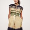 Button front and adjustable slider belt.