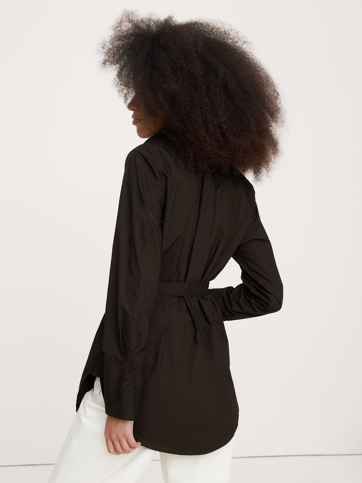 Cotton Poplin Belted Tunic Shirt