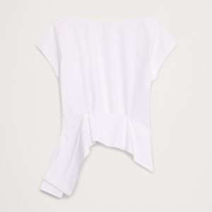 Deconstructed, reconstructed. This cotton poplin shirt borrows elements from the classic shirt, with a boatneck and asymmetrical hem twist. Let the bottom sash down or tie at the side to cinch the waist. Relaxed fit: Relaxed fit through shoulders, chest and waist. Boatneck. Button detail and asymmetrical hem. Unlined. #825954