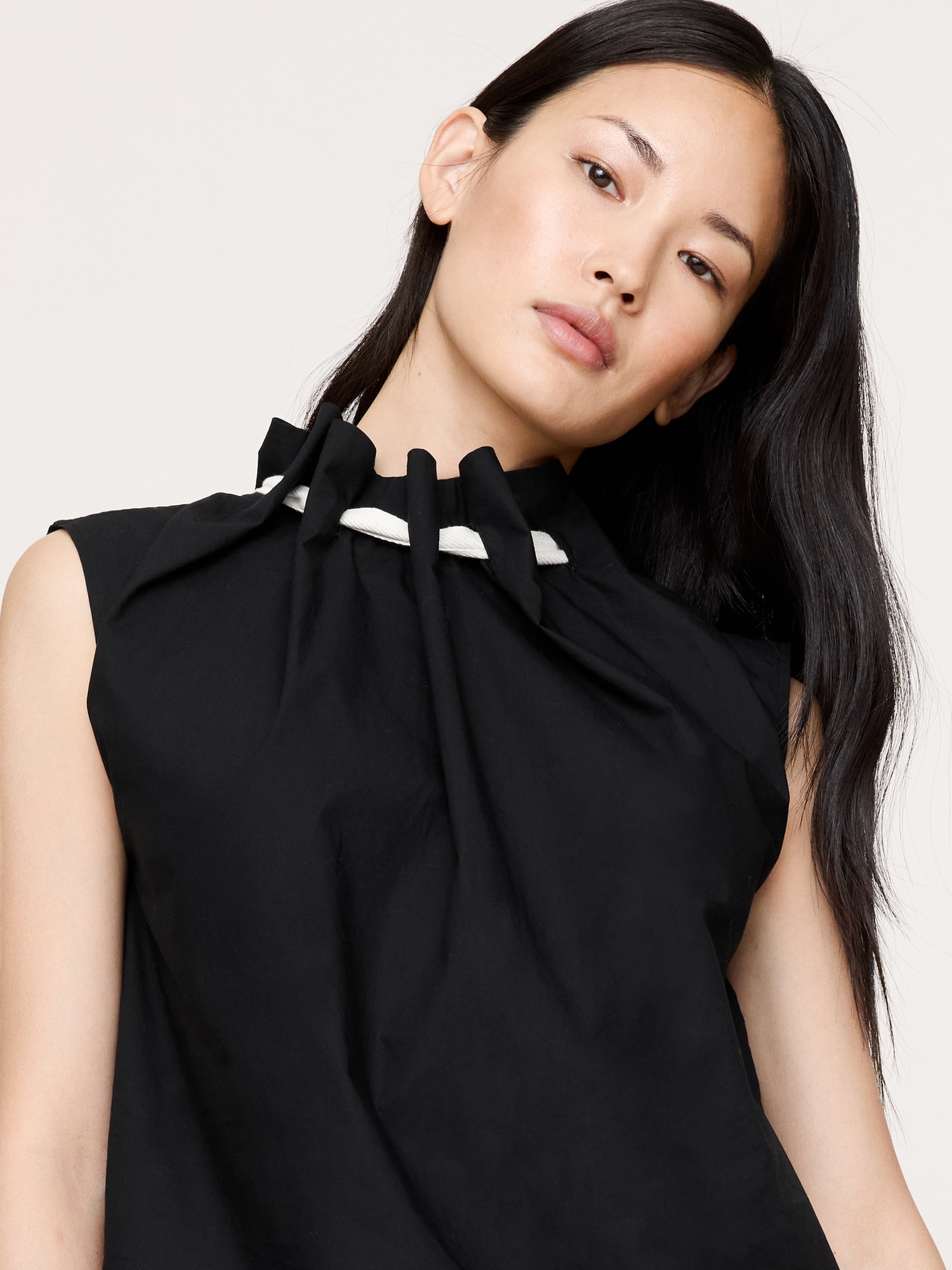 Cotton Poplin Cinch-Neck Top