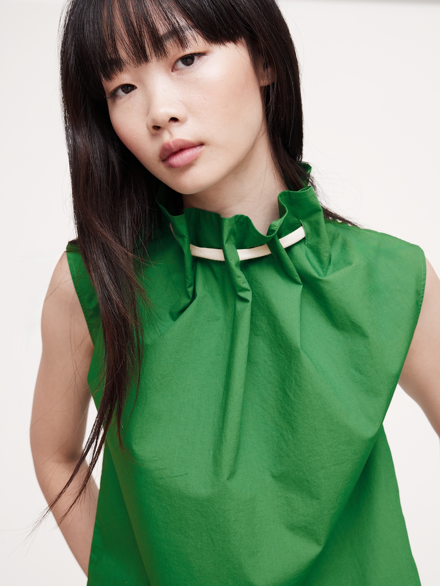 We love poplin because it transcends trends. Here, a cinch-neck top with drawstring detail in premium 100% cotton poplin.
