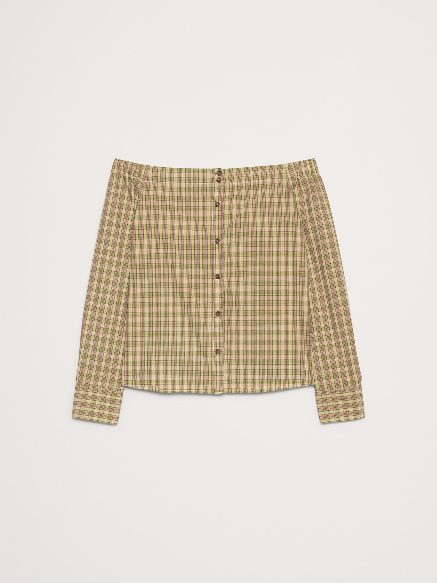 We reimagined the classic button-down shirt in an off-the-shoulder silhouette—in our premium 100% cotton poplin.