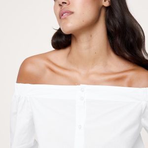 We reimagined the classic button-down shirt in an off-the-shoulder silhouette—in our premium 100% cotton poplin. Classic Fit: A straight and easy fit. Off-shoulder neckline. Button front. Unlined. #826022