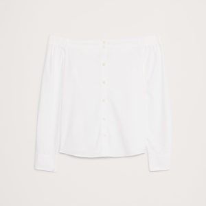 We reimagined the classic button-down shirt in an off-the-shoulder silhouette—in our premium 100% cotton poplin.