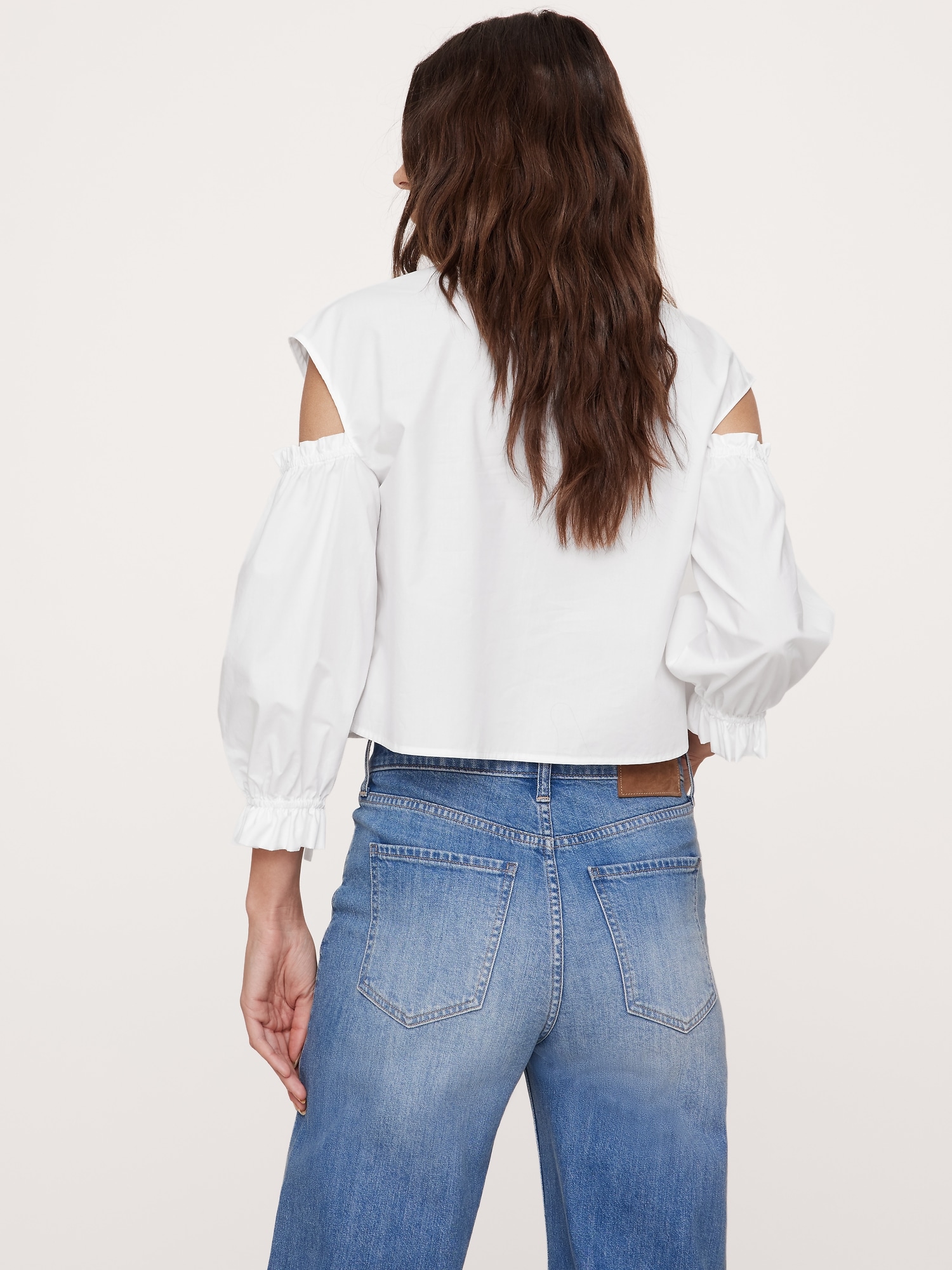 Cotton Poplin Puff-Sleeve Cropped Top