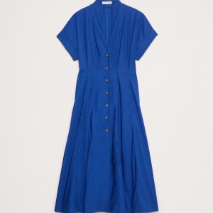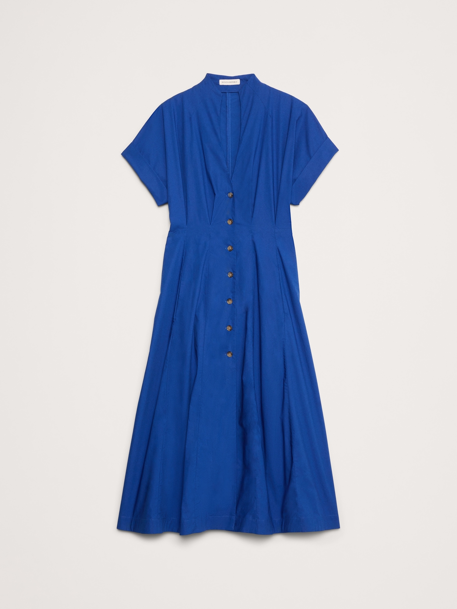 We can’t decide what we love most about this dress: the low, collarless neckline or the seamed accents that gather into pleats that define the waist. We cut it in our signature cotton poplin so you can style it now with ankle boots and an oversized shirt jacket and wear it later with sandals and a big beach hat.