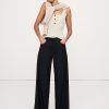 Stand collar with concealed button front.