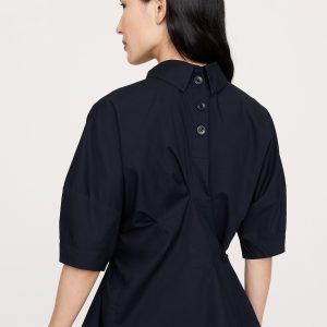 Deconstructed, reconstructed. This cotton poplin top nods at the season’s twisted shirting trend with rear button placket and pleats that wrap around the waist.