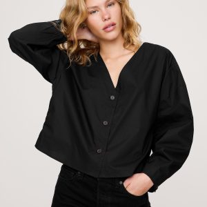 Cotton Poplin Volume-Sleeve Top