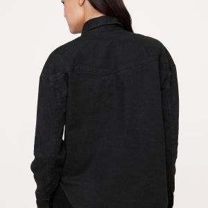 Button this cotton poplin top all the way up or leave it slightly open and style it off the shoulder for an at-ease effect.