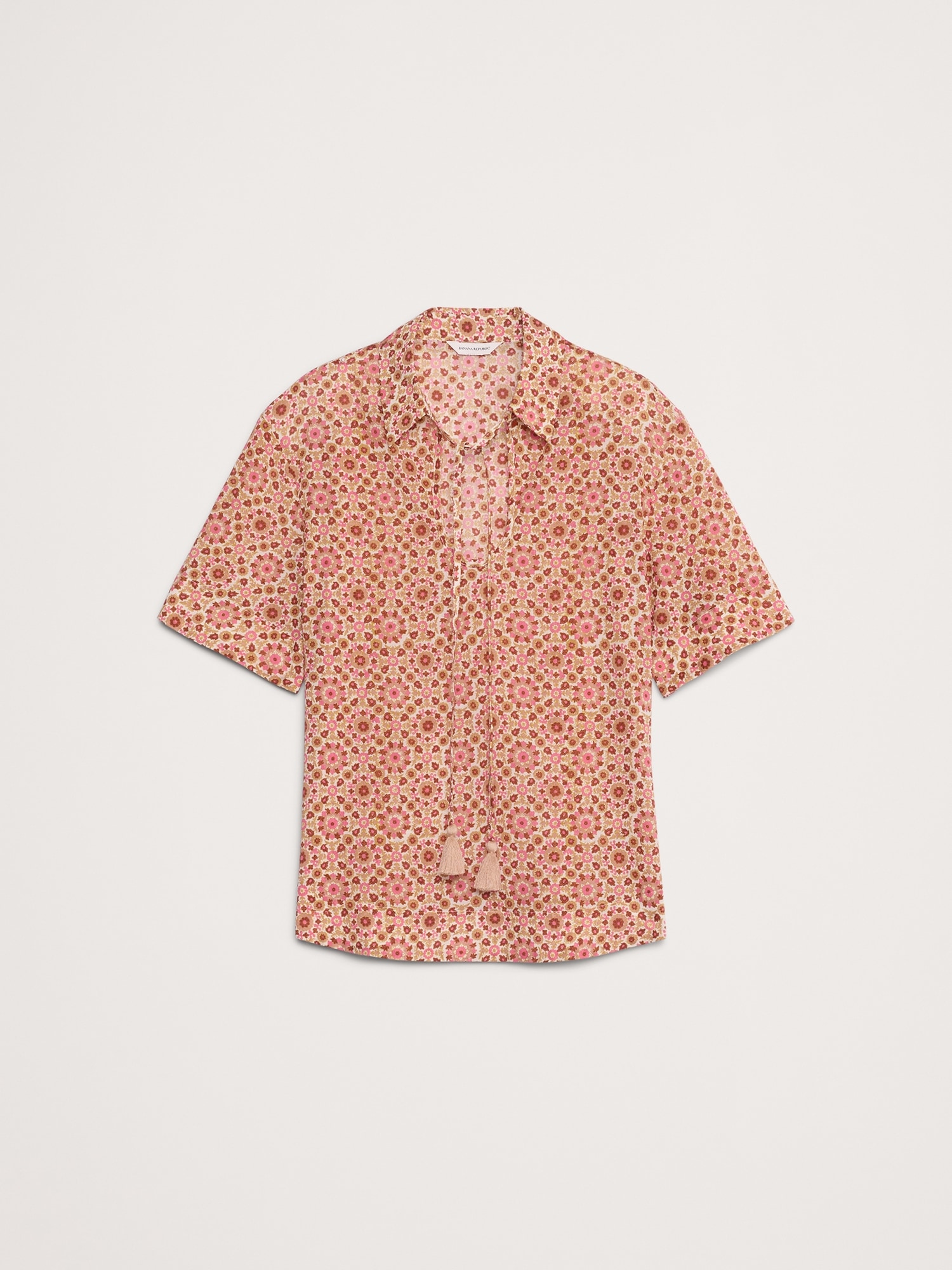An easy top with a twist. We added a keyhole cutout and a tassel tie to the neckline of this popover shirt, in our lightweight cotton lawn.