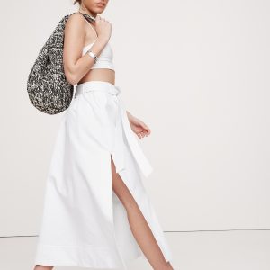 A nod to our utilitarian heritage, this maxi skirt dials up the drama with high slits at the sides. This one’s crafted from a beautiful cotton sateen fabric so it has a sophisticated shine to it and is oh-so-soft. Style it with a cropped top and sandals on warm days or pair it with oversized cashmere and flats.