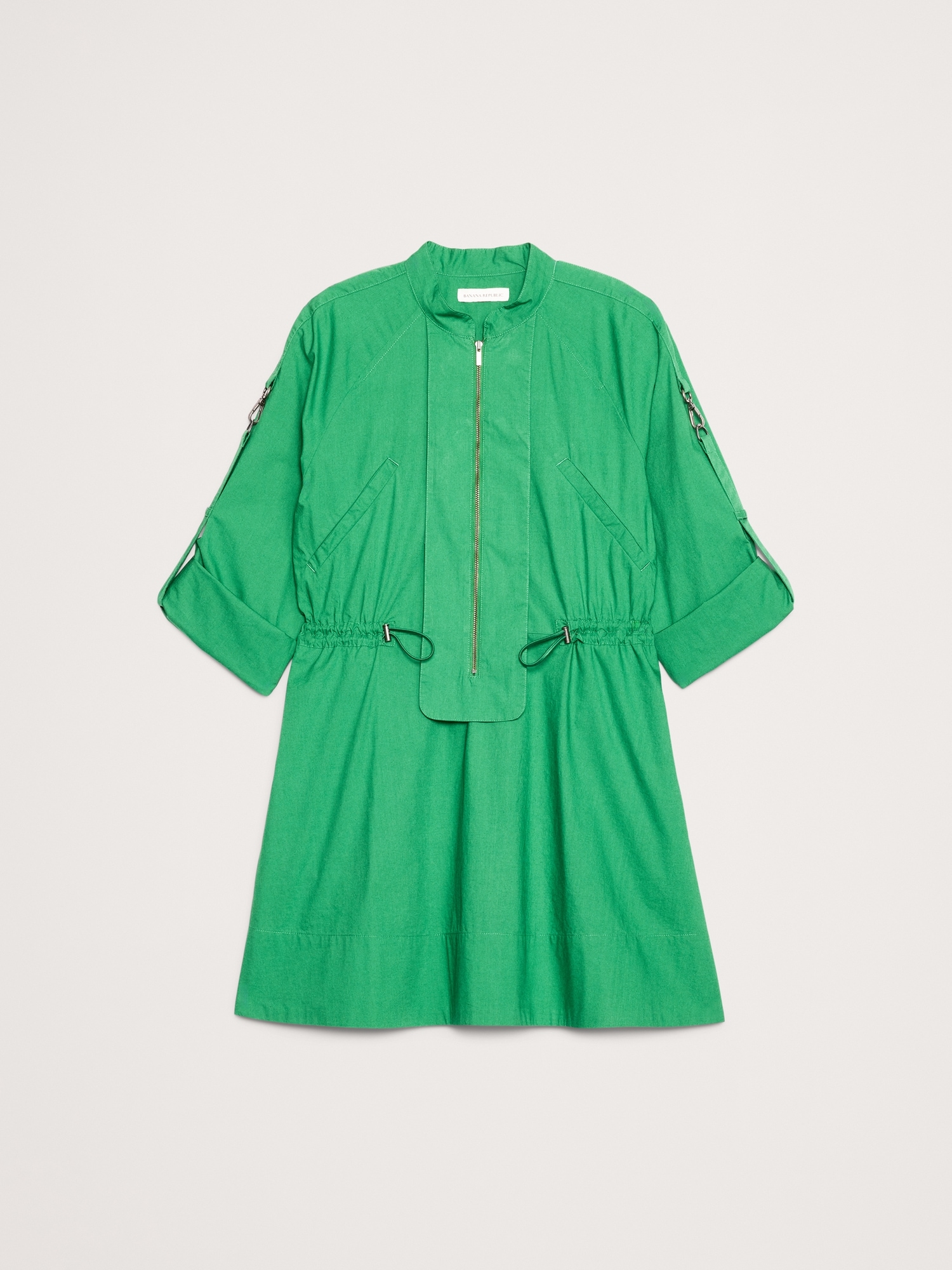 Out the door in no time. This mini dress borrows its utility detailing from classic boilersuits. Plus, we added a bungee detail to cinch the waist—in our stretch-cotton ripstop fabric, with its signature grid texture. Fit Flare: Relaxed through shoulder, sleeves, and bust, fitted waist with a flare skirt. Zip front closure. Banded collar. Front pockets with zip closure. Unlined. #818082
