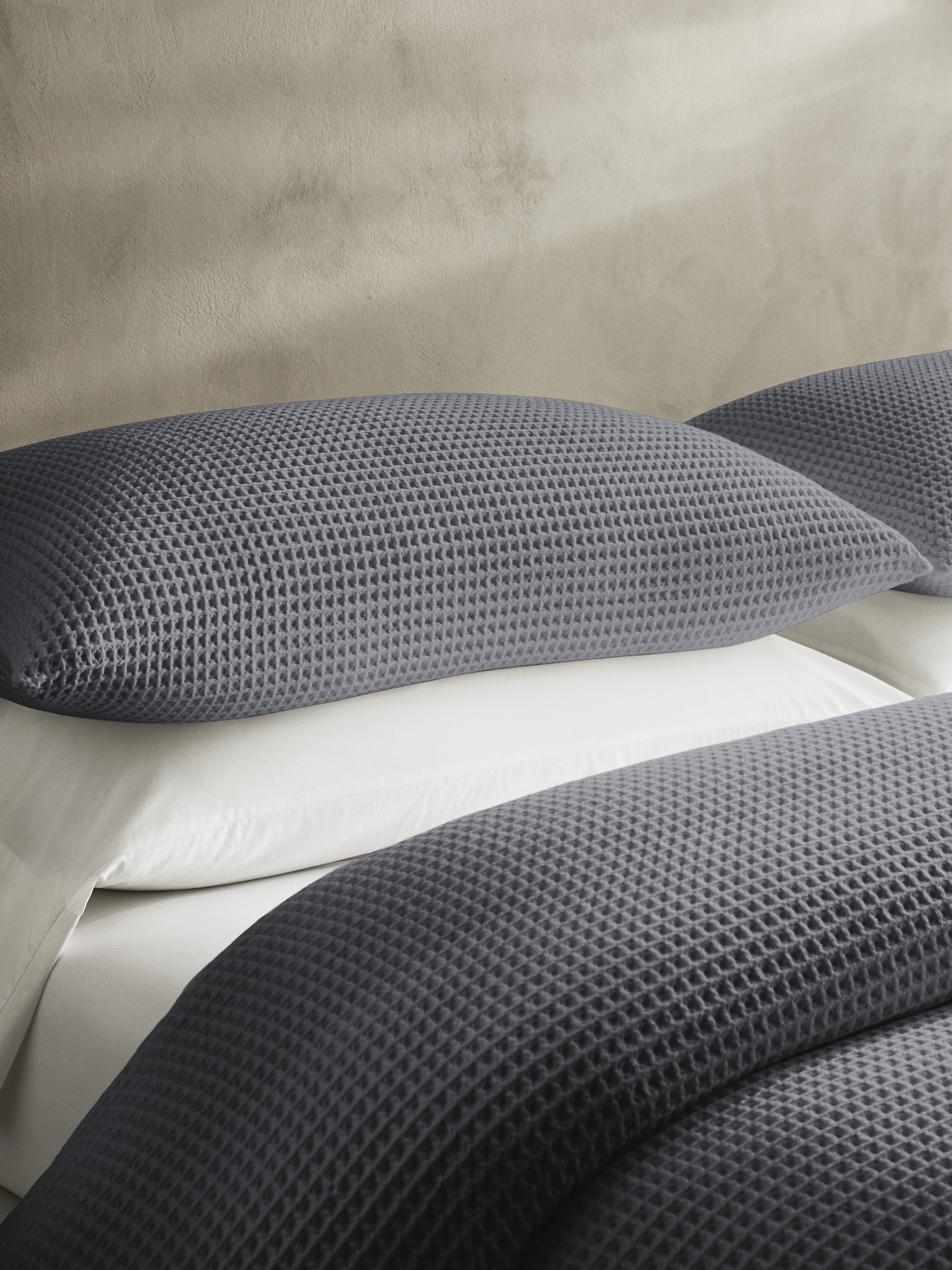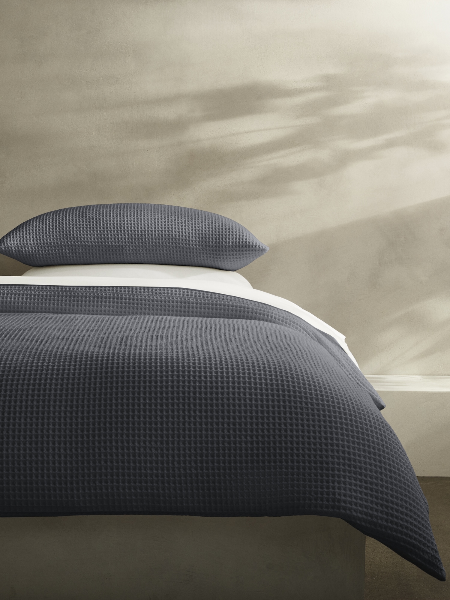 Luxurious cotton, soft and snuggly, is textured with raised ridges that are expertly woven for beautiful, honeycomb dimension in this exquisite waffle-weave duvet cover.