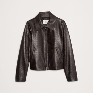 Look closely: this sleek leather jacket is cut from a luxurious leather quality that has been embossed to mimic the look and feel of crocodile. Here, we showcase this beautiful material in a classic, minimalist silhouette with a two-way zip front and point collar to give this style the retro, utilitarian vibe of a garage jacket.