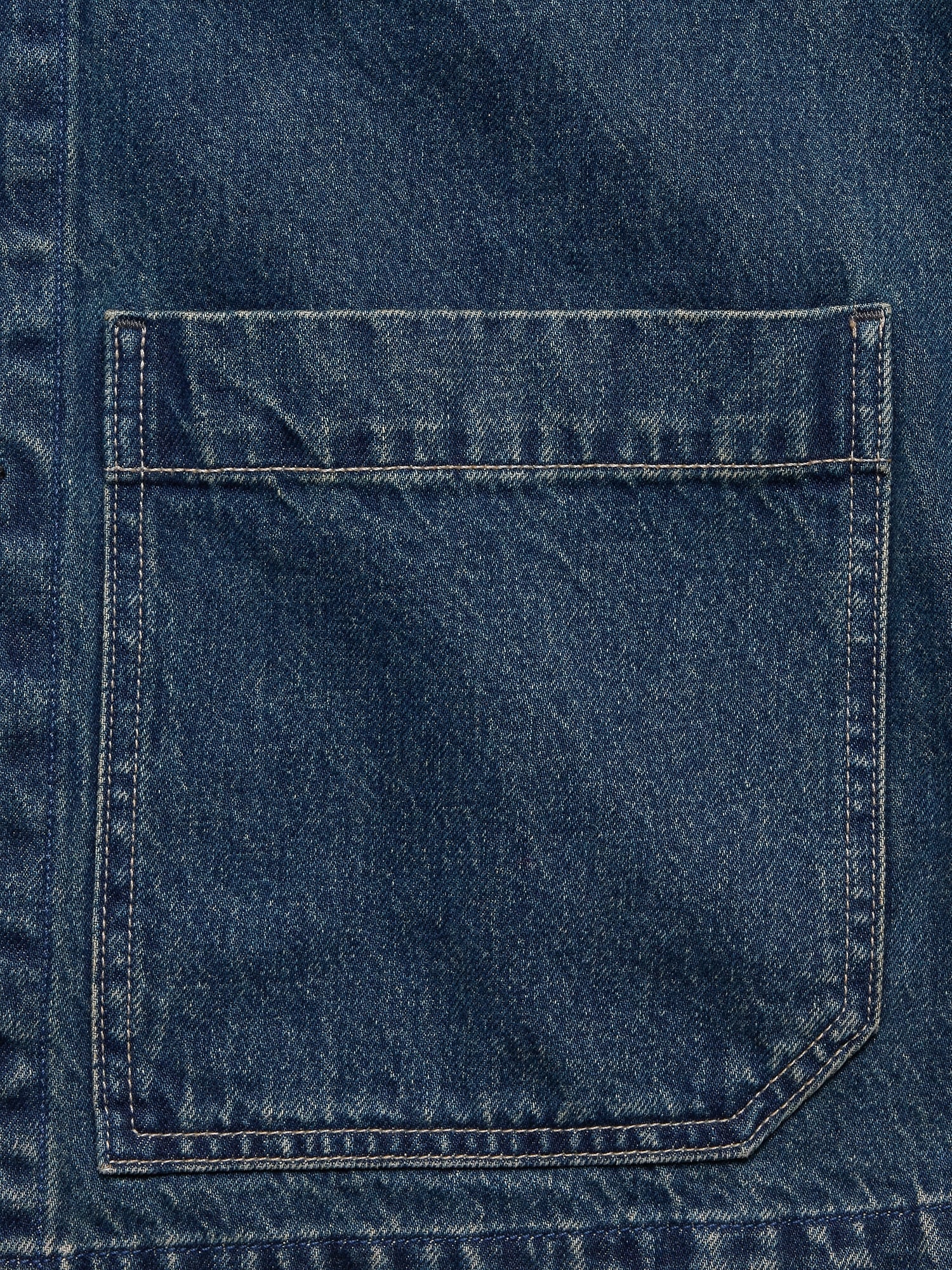 We a chore coat so we designed this one with a classic four-pocket design, corduroy collar, and a medium wash denim that looks as good as vintage.