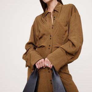 We love a shirt dress because you can wear them basically everywhere. Here, we kept the fit easy through the shoulders and chest, but defined the waist. Cut in our drapey twill so it’s a bit more dressed up. Blouson fit: Relaxed through chest and shoulders, defined waist with an A-line skirt. Point collar with button front. Chest pocket. Unlined. #817701