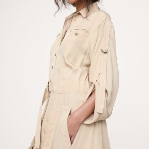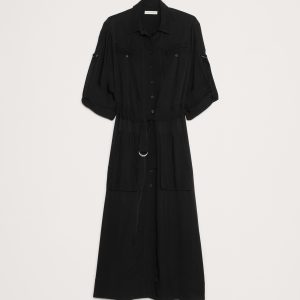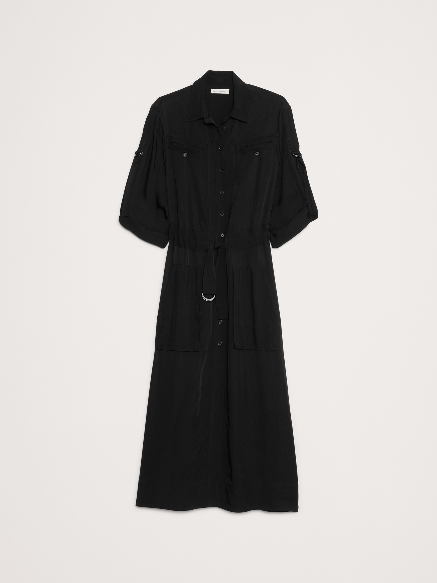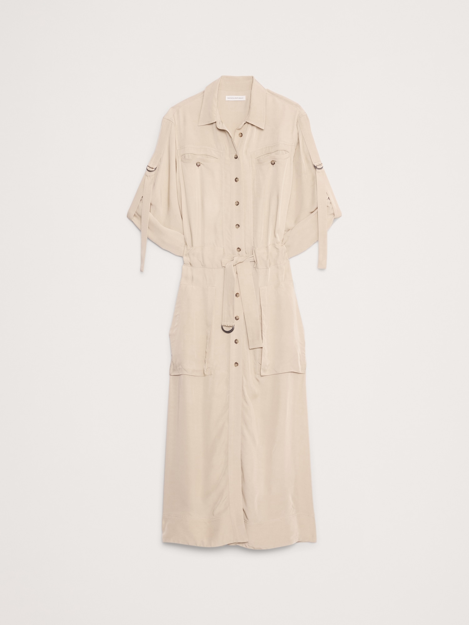 Always put-together, we love a shirt dress because you can wear it basically everywhere. Here, we imagined it with utility pockets in our drapey twill so it’s a bit more dressed up.
