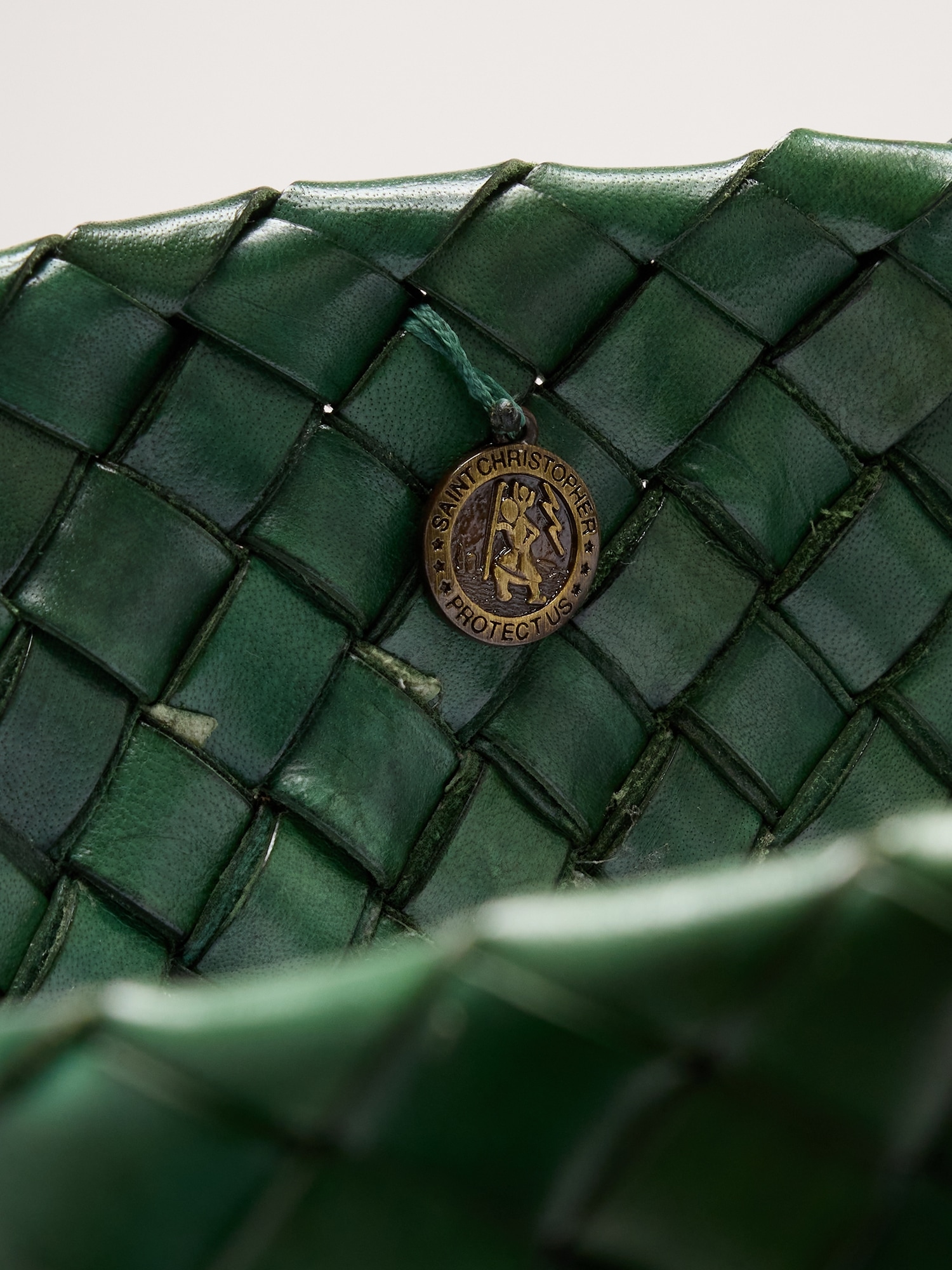 An antiqued St. Christopher medal charm (an homage to the patron saint of travelers) is hand-sewn inside each and every Dragon Diffusion bag—the brand’s very own seal of authenticity.