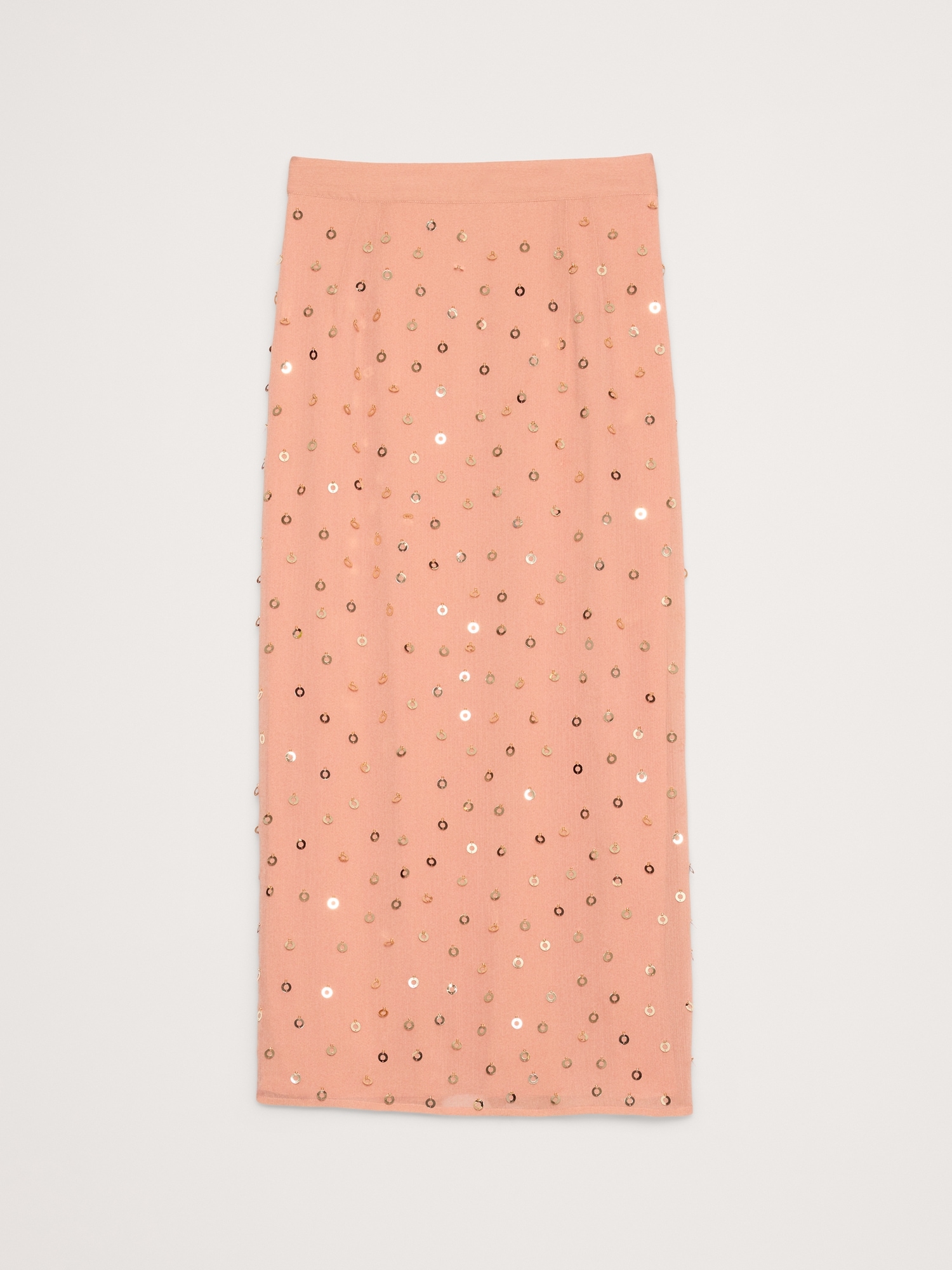 A skirt to make dressing-up feel effortless, we cut this one from chiffon embellished with gold paillettes.