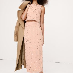 A top to make dressing-up feel effortless, we cut this one from chiffon embellished with gold paillettes and left the back open with a little overlap.