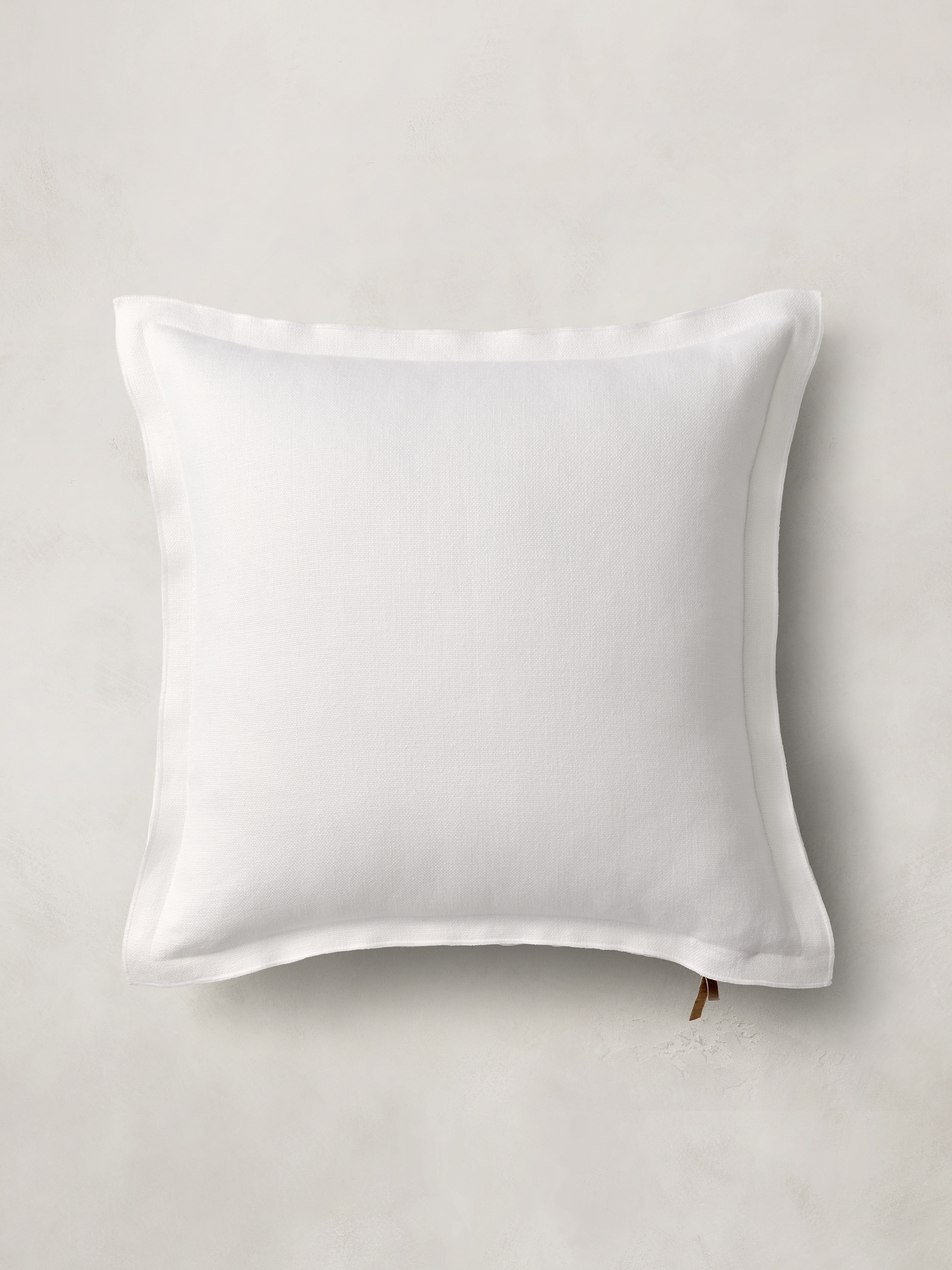 Luxe linen, garment-dyed for dimensional color. Expertly woven of fine linen, our pillow cover is specially dip-dyed for refined tonal beauty and accented with flanged details and a leather pull. Exposed zip closure and leather pull. Made in India. Pillow inserts are sold separately and are sized slightly larger than our pillow covers to create a fuller effect. #618696