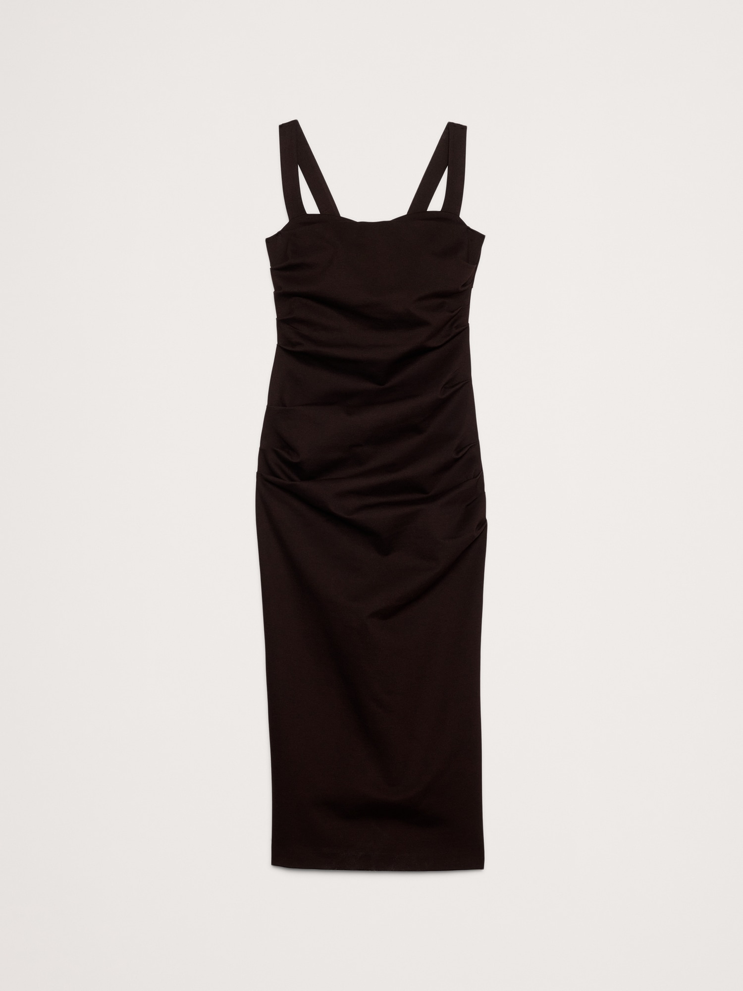 This ruched midi dress uses our Everywhere Ponte fabric—a favorite for its dressed-up look and high stretch for comfort. Here, we chose a fitted silhouette and a sweetheart neckline.