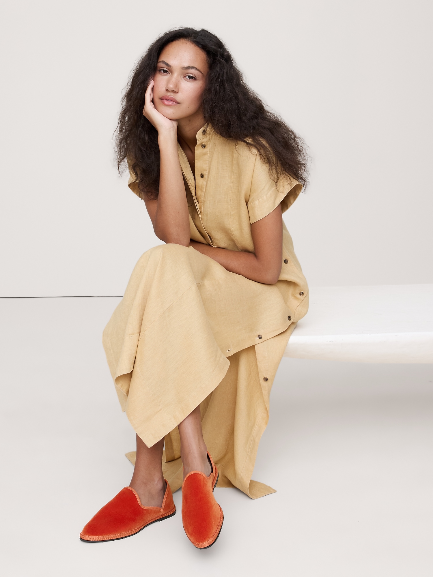 A Cayumas original, designed for the modern woman, with extra padding in the heel and side cut-outs to keep things fresh even on hot days. Each pair is hand-sewn in Northern Italy from organic cotton velvet with recycled bicycle tire soles. Did we mention they can also be washed?