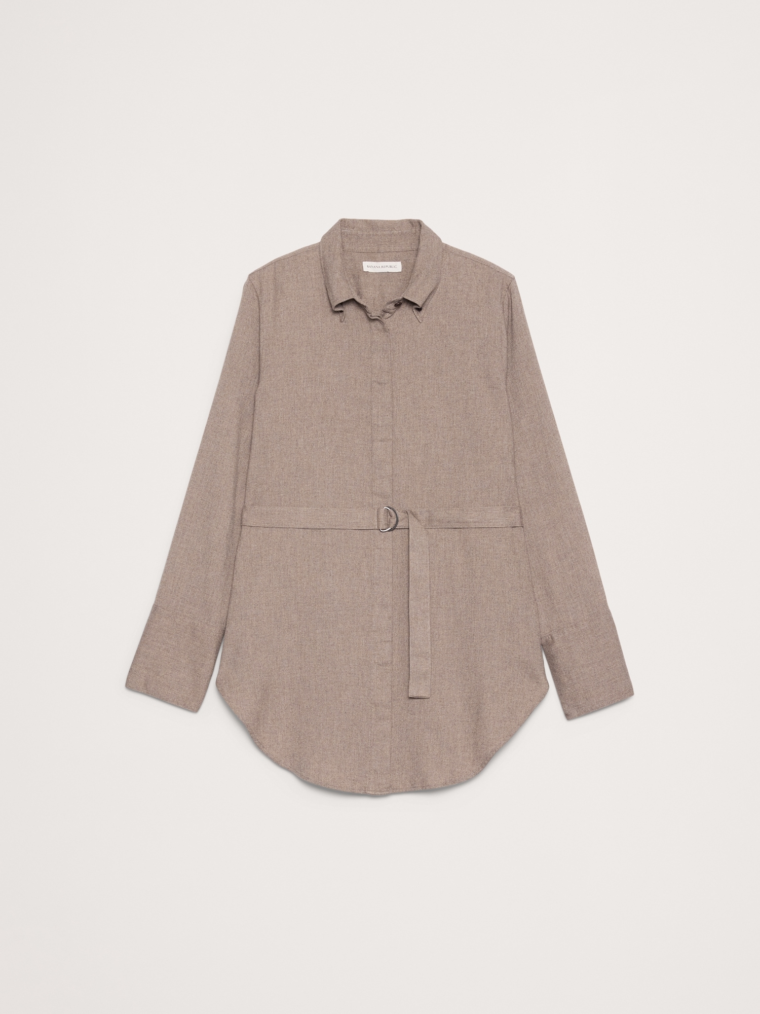 It’s these easy cotton shirts we’re loving right now. This one is tunic length and has an adjustable slider belt to define the waist, cut in our softest cotton flannel