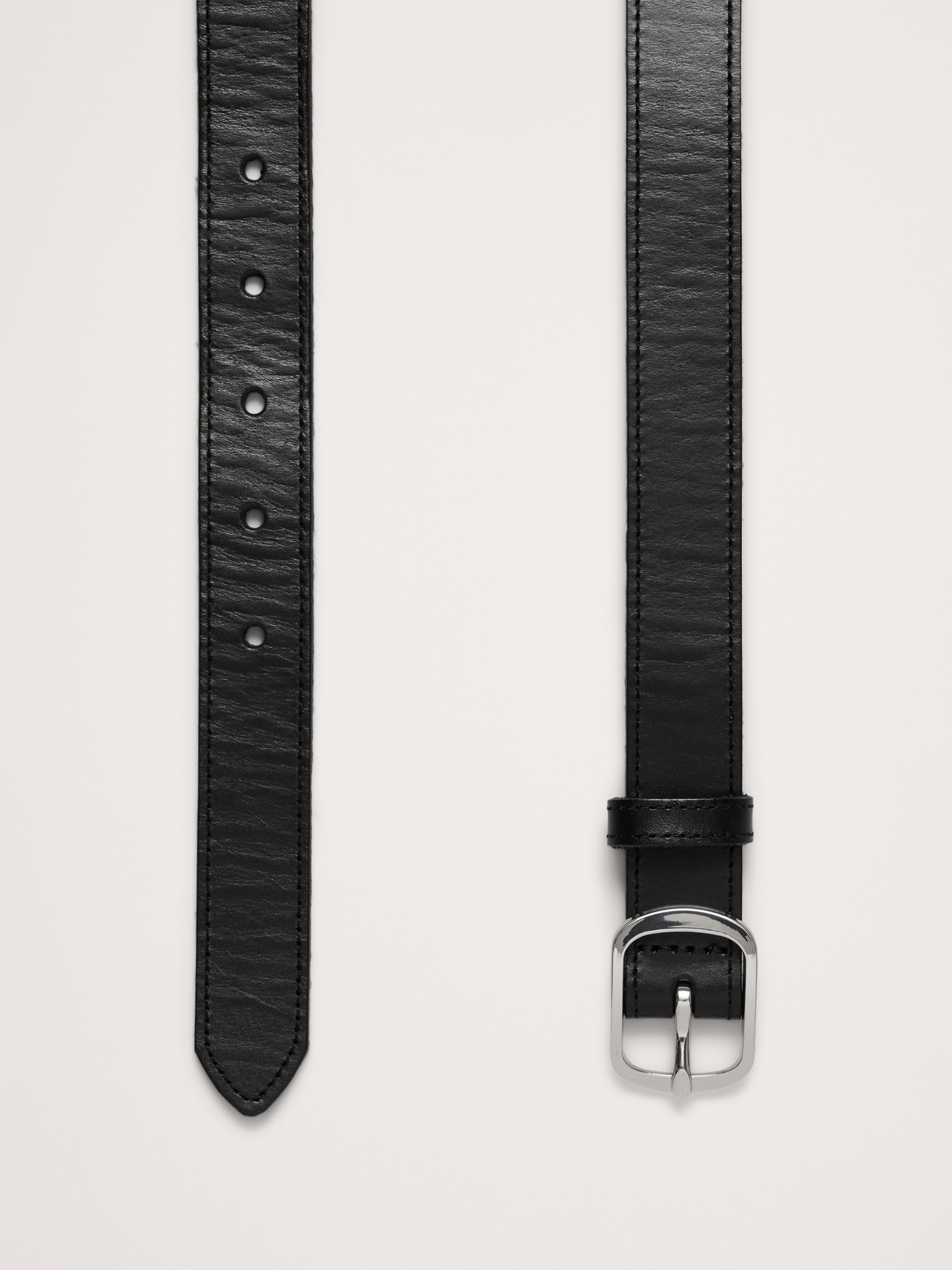 Refined and timeless, we rely only on the beautiful quality of leather to set this belt apart, finished only with a shining silver buckle in a gently rounded square shape.