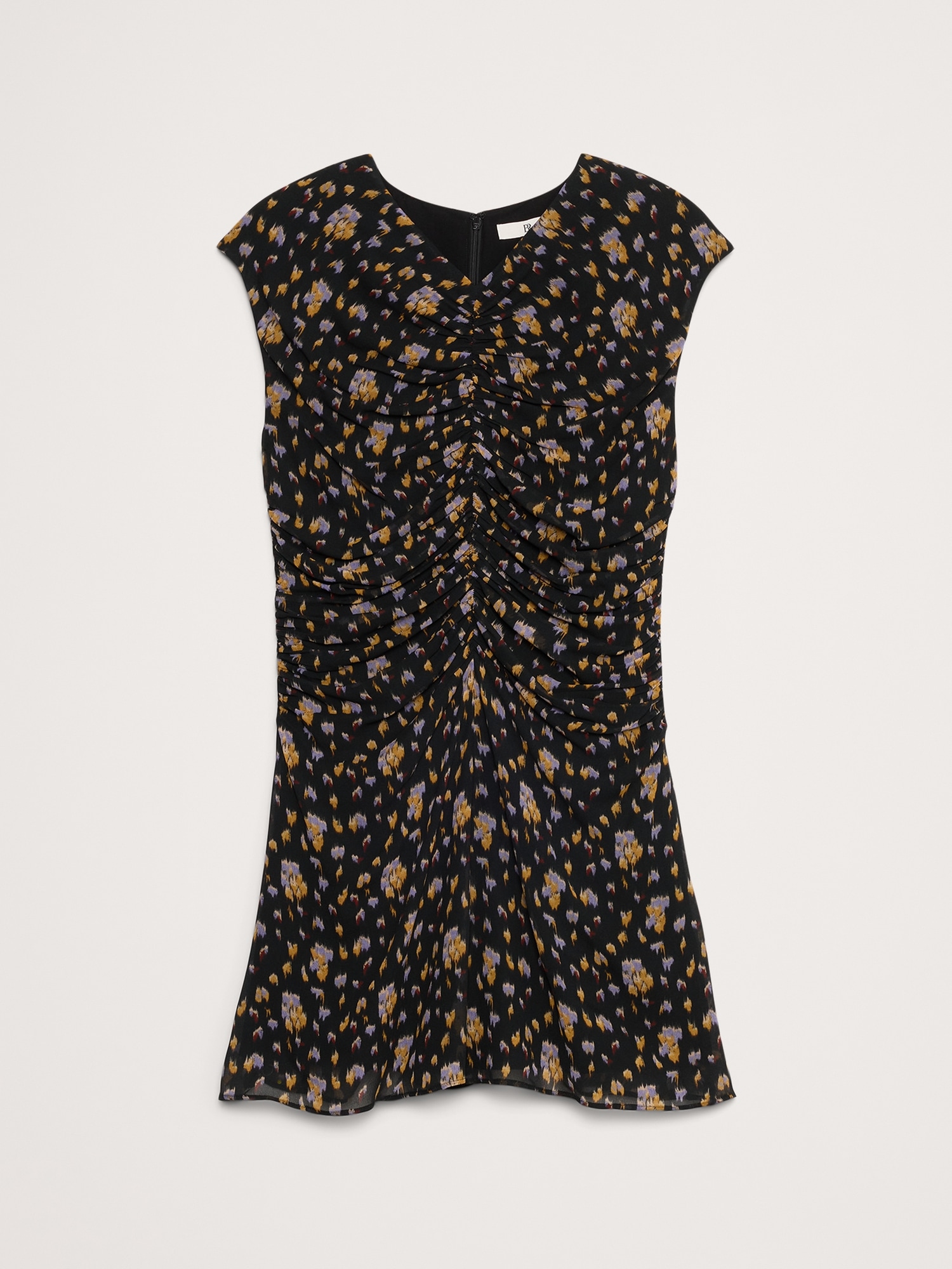 A subtle twist on the classic mini dress, this fitted style has a ruched detail at the center-front and back. Style it now with knee-high boots and an oversized cardigan, and pair with flat sandals once the weather warms.